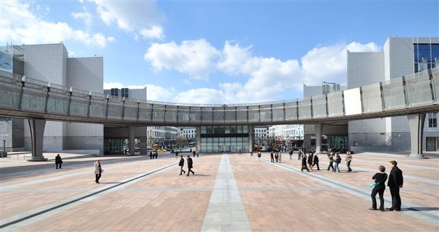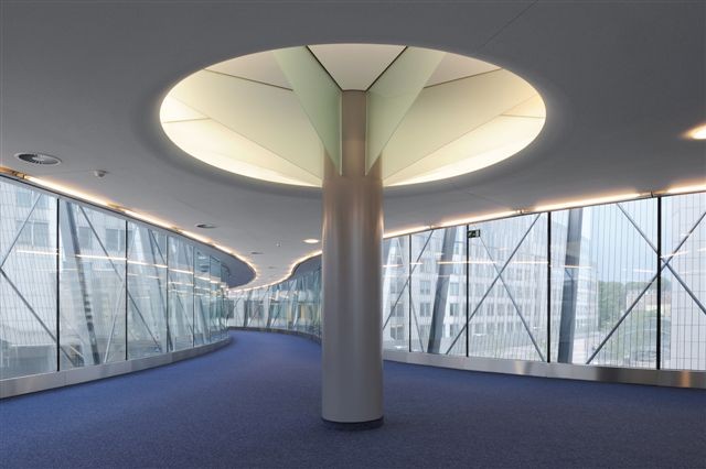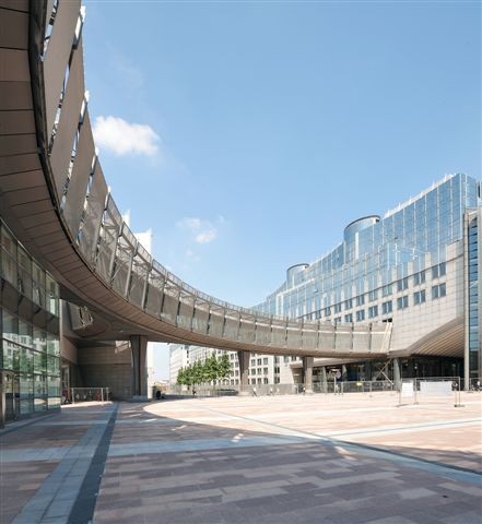 In het kader van de uitbreiding van de Europese Unie, werd naast de gebouwen Paul-Henri SPAAK (D2) en Altiero Spinelli (D3), 2 nieuwe blokken opgetrokken (D4 en D5). Om deze verschillende gebouwen met elkaar te verbinden, werd een bijzondere metalen voetgangersbrug gebouwd op de as van het Luxemburgplein, wat het Europees Parlement meteen ook een grootse protocollaire ingang biedt. De voetgangersbrug die de gebouwen D3, D4 en D5 met elkaar verbindt is een sterk staaltje ingenieurswerk van VK Engineering! De cirkelvormige loopbrug meet aan de buitenzijde 60 m diameter en loopt perfect symmetrisch ten opzichte van het Luxemburgplein. Ze rust op 8 kolommen en weegt maar liefst 280 ton.