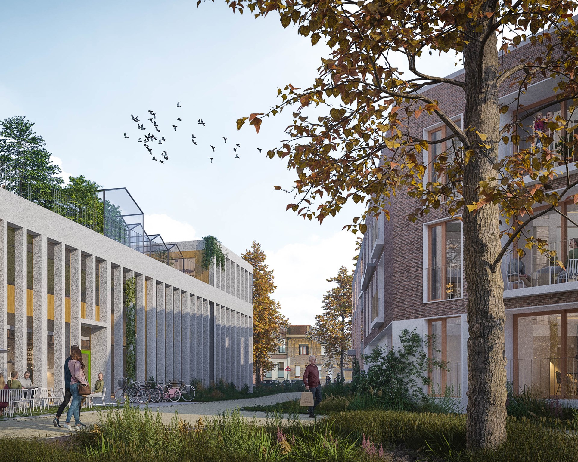 Het ontwerpteam van DECLERCKDAELS architecten, bildt.architecten en burO Groen heeft de architectuurwedstrijd gewonnen voor de herontwikkeling van de site van Damman Croes in Roeselare. Ontwikkelaar CAAAP koestert hoge ambities om deze site om te vormen tot een kwalitatieve woon- en leefbuurt. Ondersteund door stedelijke gevels die hun voor hun materialisatie en vormgeving putten uit de omgevende architectuur, verknoopt deze nieuwe stedelijke ruimte het Onze-Lieve-Vrouwe plein met de Spanjestraat op een evidente en natuurlijke manier. Opgeladen met gemeenschapsfuncties, waaronder een school, en een rijke variatie aan woontypes, zal deze plek het hart van de wijk Krottegem opnieuw doen kloppen.