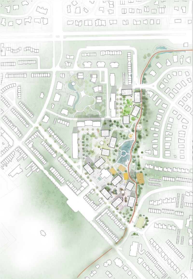 Het ontwerp voor deze nieuwe wijk toont hoe verdichting op mensenmaat de levenskwaliteit kan bevorderen van de bewoners, de directe omgeving en de stad.