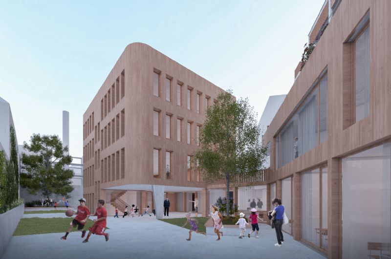 In de Zennestraat in Brussel is in september 2021 de bouw gestart van een nieuwe Nederlandstalige kleuter- en lagere school voor 240 leerlingen. Het ontwerp van BOB361 architects zet voluit in op beleving en op duurzaamheid, door onder meer de contour van de site te bekleden met kokospanelen waarop inheemse planten kunnen groeien. Naast de school komen 15 passiefwoningen in beheer van de Grondregie van de stad Brussel.