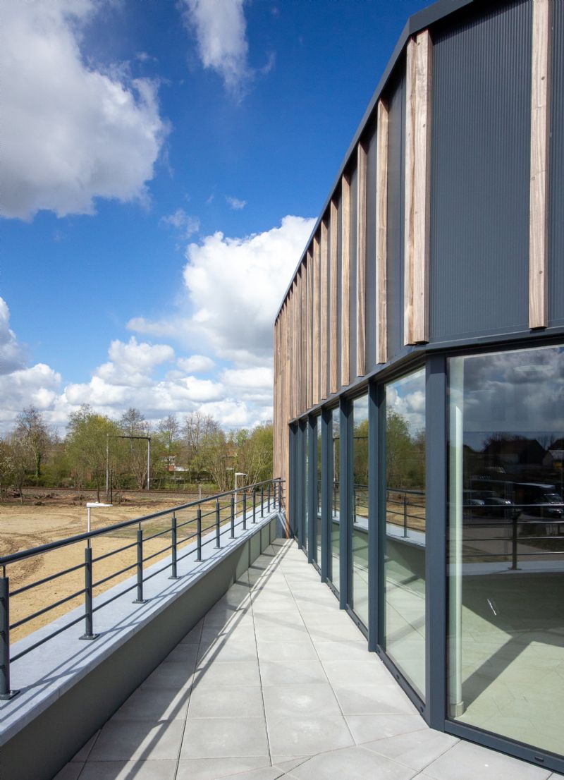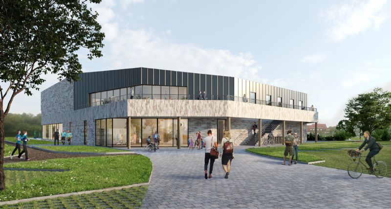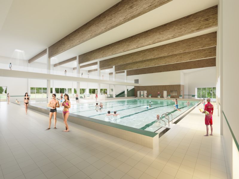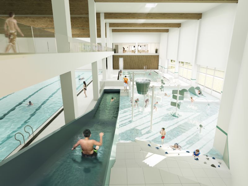 Het zwembad in het centrum van Wevelgem was toe aan vervanging en werd onderdeel van de site Sportspoor. De Zwemkom zal een extra impuls geven aan de site, waar voorheen al verschillende sporten beoefend konden worden. De focus lag bij dit project op het accentueren van de totaalbeleving en een subtiele overgang tussen het complex en het omliggende groen.