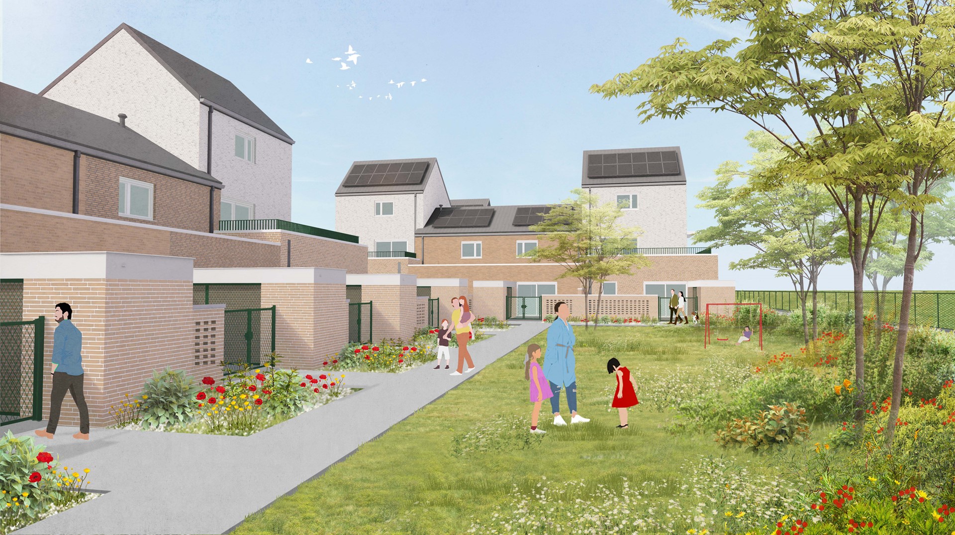 CKA+, i.s.m. Studio Uad won de wedstrijd om de sociale woonwijk ‘Debbautshoek’ in Zelzate nieuw leven in te blazen. Het idee achter het masterplan vertrekt vanuit de gedachte om de wagen minder aanwezig te maken in de wijk, zodat de vrijgekomen ruimte teruggegeven kan worden aan de bewoners in de vorm van collectief groen. Hiervoor knippen de ontwerpers letterlijk het veelvoud aan noord-zuid verbindingen door en vangen ze het parkeren op in een vergroende omgeving, de parkeerlobby’s. Door deze parkingclusters zijn er, ondanks de verdichting in het plan, geen ondergrondse parkeerplaatsen nodig.