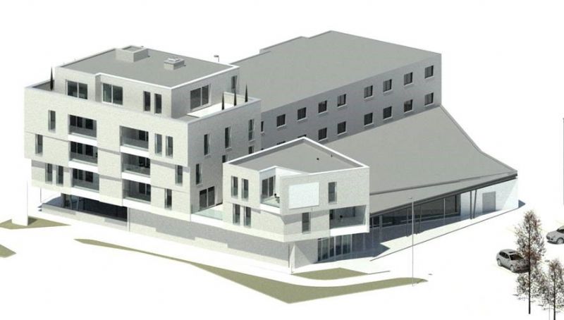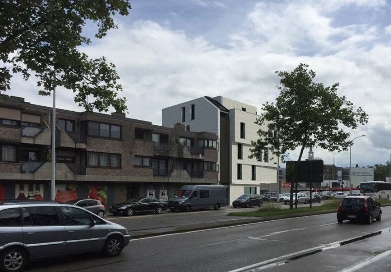 Architectenbureau De Busschere Wolfs architects hertekent de skyline van Maasmechelen met de uitbreiding van de Delhaize met appartementen en het herinrichten van de parkings op een klein perceel. Het kleine perceel wordt voor 100 % bebouwd. De ontwerpers zullen een kopgebouw realiseren met gewaaierde gevels voor een speelse gevelgeleding.