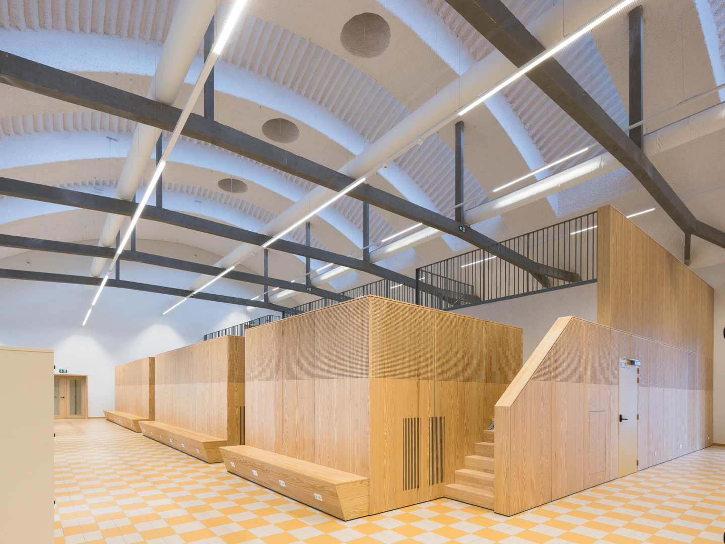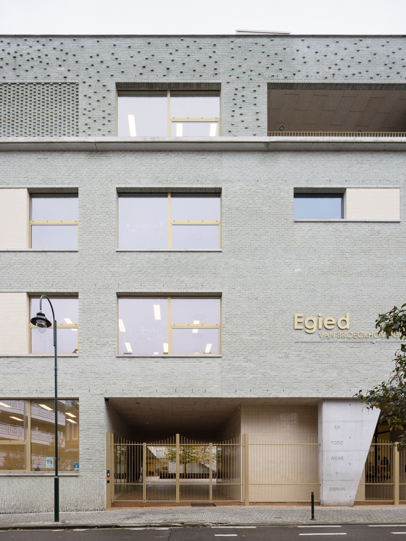 In haar DBFM-programma wil de Vlaamse regering een 40-tal scholenbouwprojecten realiseren door publiek-private samenwerking. De Egied van Broeckhovenschool in Sint-Jans-Molenbeek moet een bindteken worden tussen de 860 leerlingen in de zogenaamde domeinschool en de buurtbewoners. B2Ai architects stond in voor het ontwerp en interieurontwerp, VK architects + engineers was verantwoordelijk voor stabiliteit & technieken, Stefaan Thiers was landschapsarchitect van dienst.