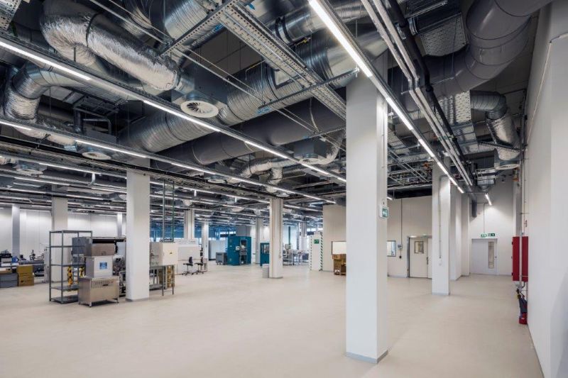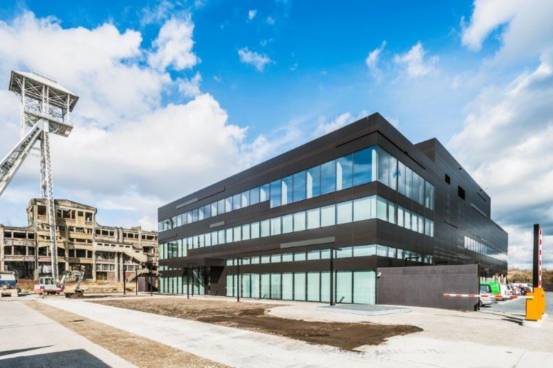 Het gloednieuwe EnergyVille 2-complex huisvest zes hightechlabo’s, waar gespecialiseerde onderzoekers zich in alle rust kunnen toespitsen op innovatieve vormen van zonne-energie en batterijopslag. Het gebouw profileert zich als een baken van wetenschappelijke vooruitgang, maar slaat tegelijk de brug met het landschap en het industriële verleden van de site.