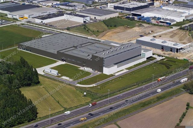 De nieuwe drukkerij van De Persgroep (Het Laatste Nieuws) langs de autosnelweg in Lokeren