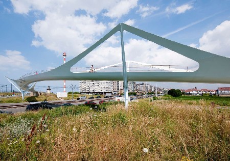 De fiets- en voetgangersbrug ‘De Lichtlijn’, 107 m lang en 3 m breed, wekt de indruk uit één grote staalplaat gesneden te zijn. De vorm van de brug doet denken aan een golfslag op zee. De link met de naastliggende Noordzee wordt nog benadrukt door de gekozen kleuren: zeezand voor de bovenzijde, lichtblauw voor de onderzijde van de staalstructuur van de brug. De speciale vorm vloeit voort uit de statica en de fysica: al het overbodige materiaal wordt als het ware weggesneden.