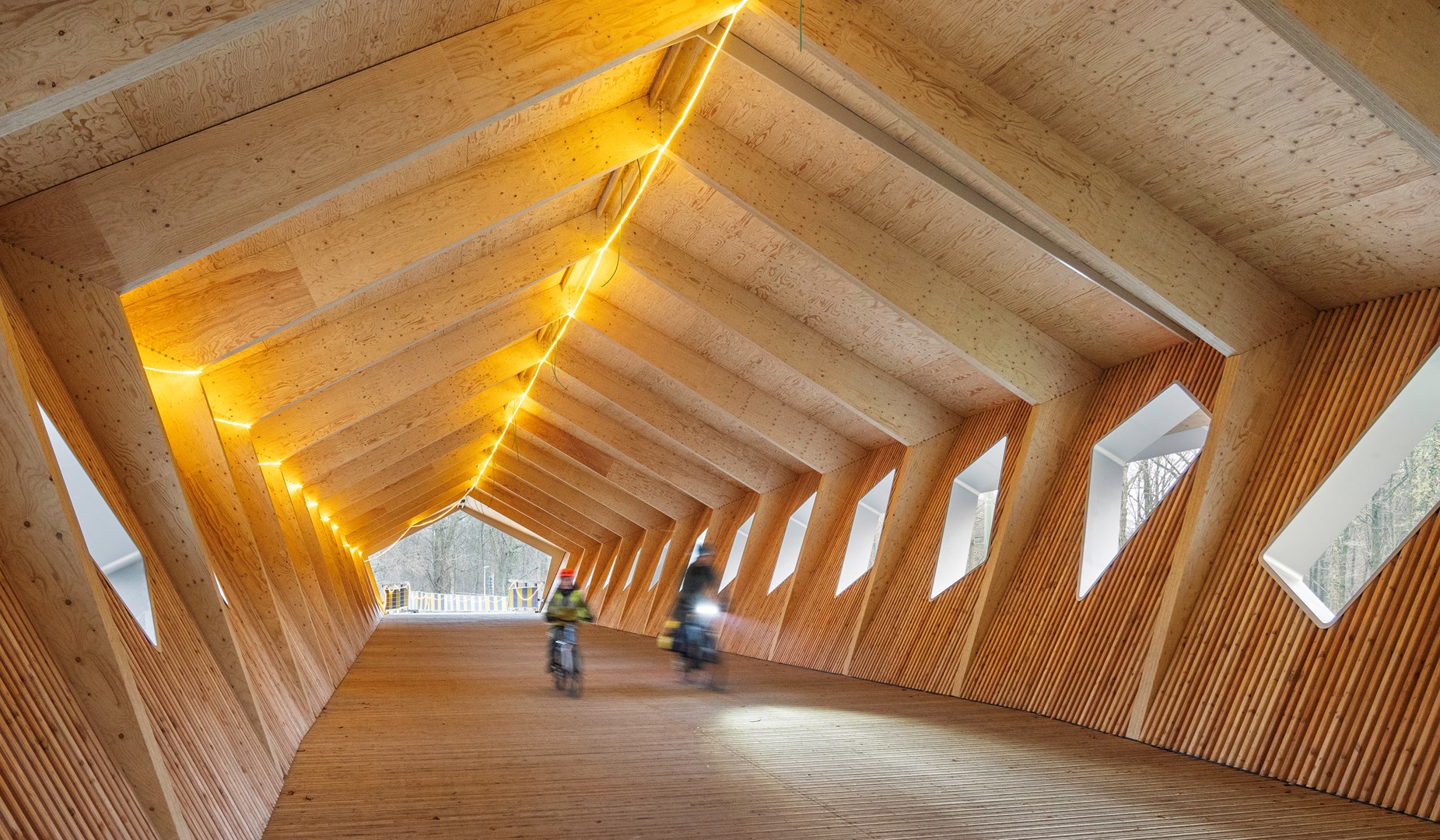 Recent werd de fiets- en voetgangersbrug boven het Vierarmenkruispunt in het Zoniënwoud officieel in gebruik genomen. Deze unieke houten brug, ontworpen door Ney & Partners, is een cruciale schakel in de fietssnelweg F29 die Brussel, Tervuren en Leuven verbindt. Met een innovatieve constructie van biogebaseerde materialen zet het project in op duurzaamheid en mobiliteitsverbetering.