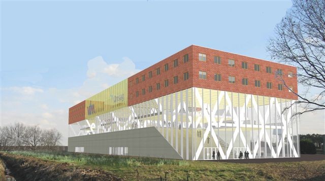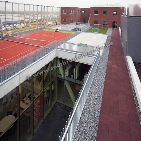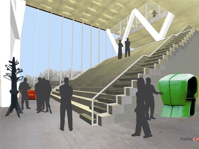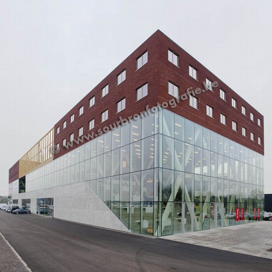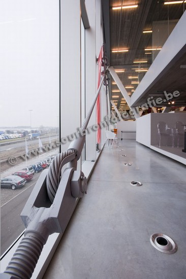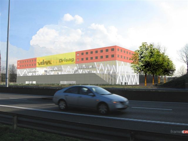 Frame 21 vormt o.m. de nieuwe showroom van Drisag, fabrikant van kantoormeubilair. Het is 104 meter lang, 21 meter hoog en 31 meter breed en bestaat uit drie bouwlagen van telkens zeven meter die elk hun eigen functie hebben, maar dankzij patio''''s en buitentrappen toch sterk met elkaar verbonden worden en zo samen één entiteit vormen. Bovenaan bevindt zich een sportdak met tennisterrein.