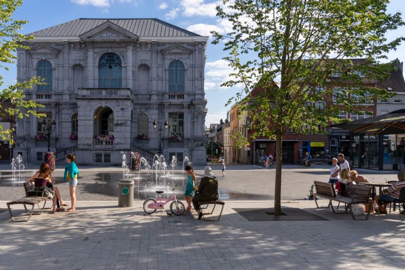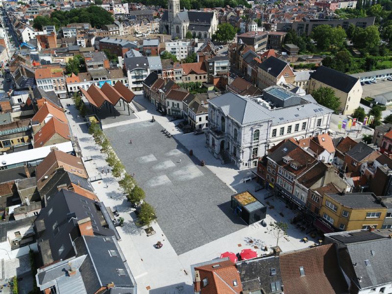 Het ondergronds brengen van de parkeerplaatsen op de Grote Markt van Vilvoorde vormde de aanleiding om na te denken over een nieuwe rol en identiteit voor het hart van de stad. De vrijkomende pleinruimte, met hierrond het stadhuis, de stedelijke bibliotheek en verschillende horecazaken heeft het potentieel om opnieuw dé ontmoetingsplaats van de stad te worden. Het vernieuwde plein, aangelegd op basis van een wedstrijdontwerp van eind 2015, werd begin 2019 feestelijk geopend. Het ontwerp is van de hand van OMGEVING i.s.m. D+A Consult, Atelier Roland Jeol, Util en OM/AR architecten