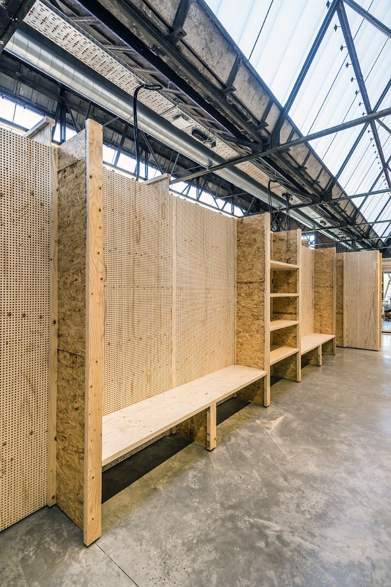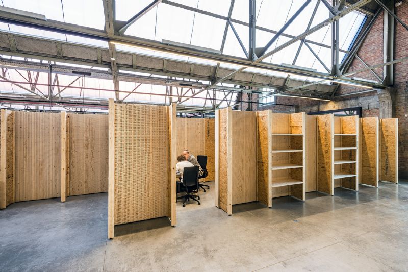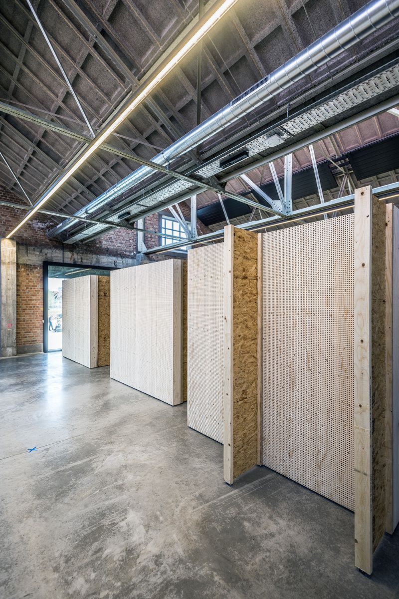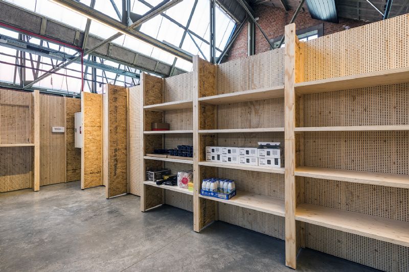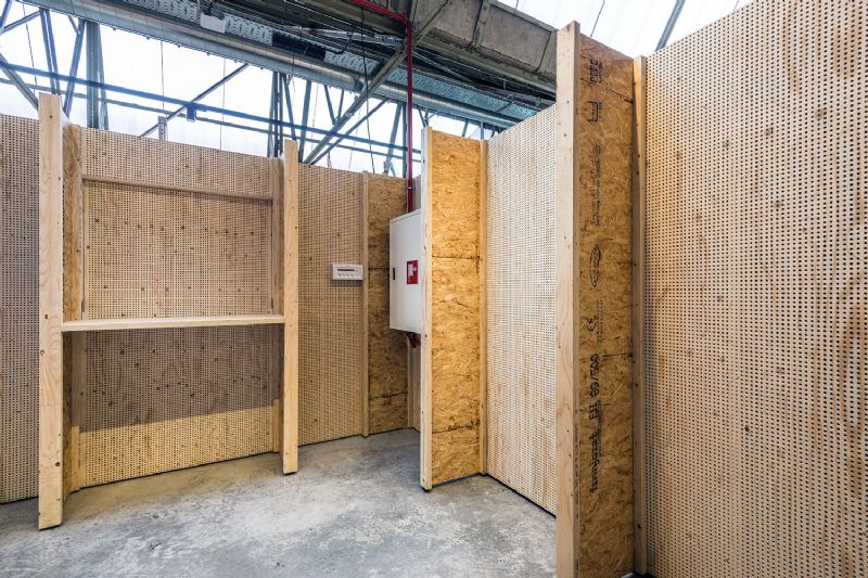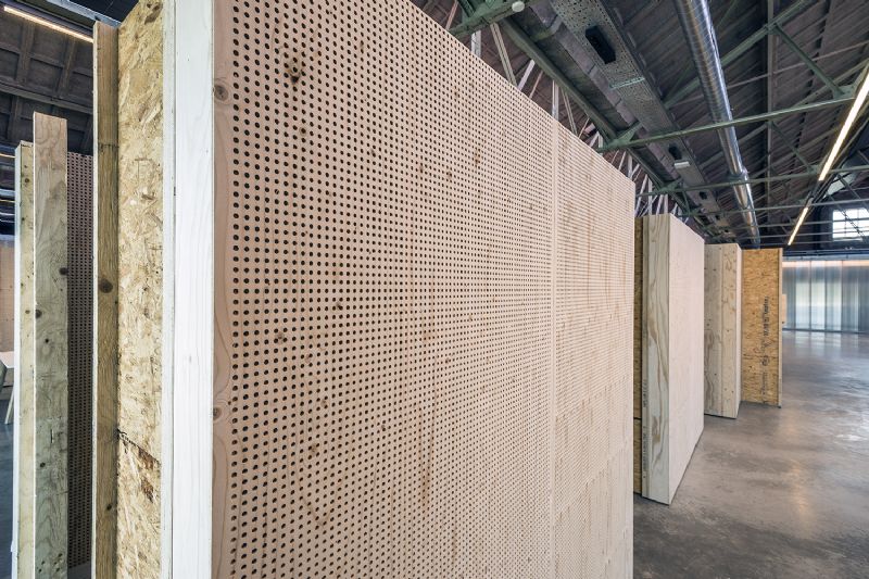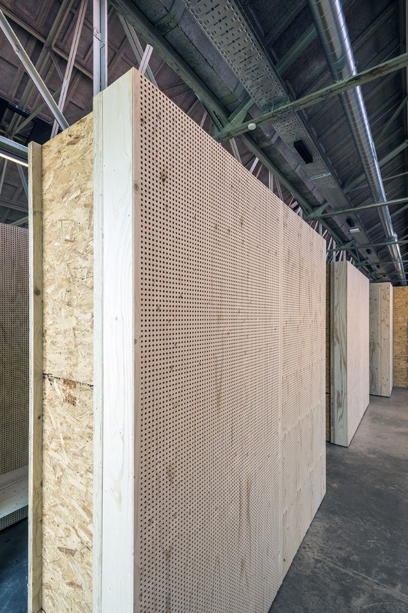 Op Kortrijk Weide transformeerde Goedefroo + Goedefroo architecten een voormalige NMBS-loods tot technologisch starter- en innovatiecentrum voor jonge starters. Het is de bedoeling dat jonge bedrijven elkaar inspireren binnen Hangar K. De ontwerpers zochten naar een snelle oplossing om performante akoestische voorzetwanden te bouwen in de loods. Op esthetisch vlak ging hun voorkeur uit naar een multiplex uitzicht. Unilin insulation zocht samen met de architect en aannemer naar een maatoplossing vertrekkende van een standaardoplossing. Onze R&D-afdeling slaagde erin de esthetische en akoestische wensen met elkaar te verzoenen in een geperforeerd paneel.