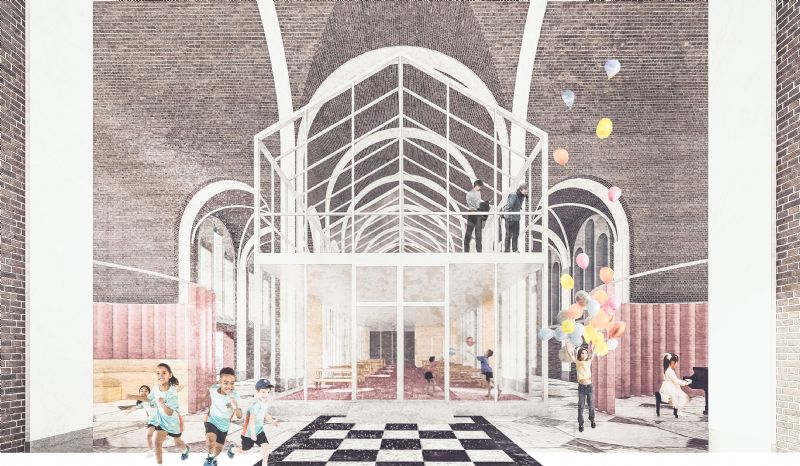 Met het voorgestelde ontwerp wordt de kerk een levendig en lerend laboratorium, waar alle binnenschoolse activiteiten kunnen worden georganiseerd die niet klasgebonden zijn. De kerk kan tevens worden gebruikt voor buitenschoolse activiteiten zoals tentoonstellingen en recepties. Het aanpalende schoolgebouw wordt ook uitgebreid met een nog te bepalen aantal klassen.