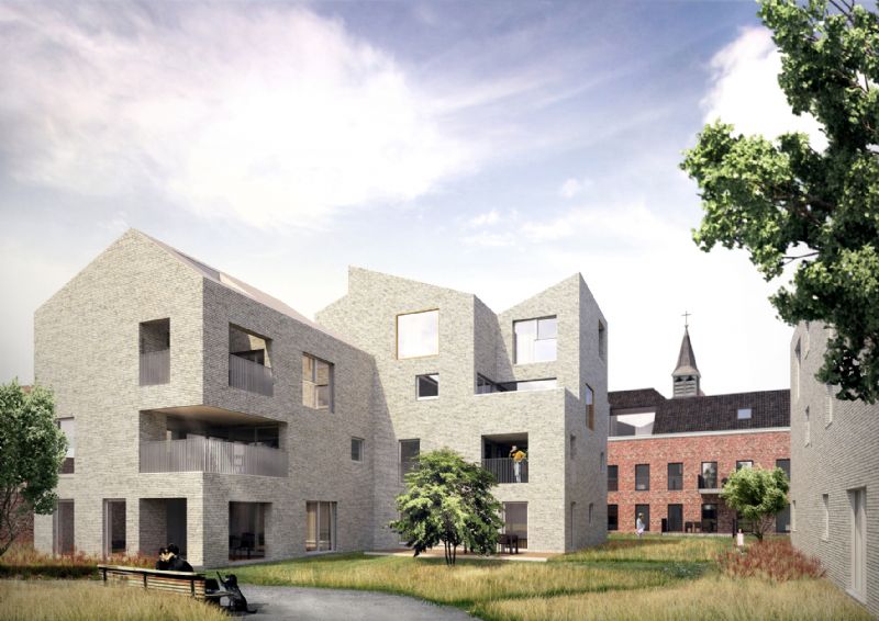 Renovatie van een beschermde woning tot 2 duplexwoningen met kantoor, renovatie van het klooster tot meergezinswoning met 14 appartementen, 3 woonblokken in de kloostertuin met 20 wooneenheden en 2 appartementsblokken met 9 wooneenheden, ondergrondse parkeergarage en omgevingsaanleg.