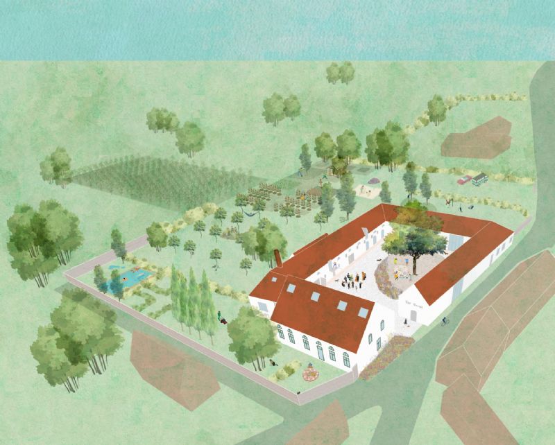 De herbestemming van een historische vierkantshoeve tot cohousingproject voor 7 gezinnen is een duurzame oplossing voor het in verval geraakte complex. De patrimoniale waarden van de hoeve, de binnenkoer en de omringende tuin worden in ere hersteld, rekening houdend met het aanzicht van de site en omgeving, de eenheid en het historisch karakter van de gebouwen.