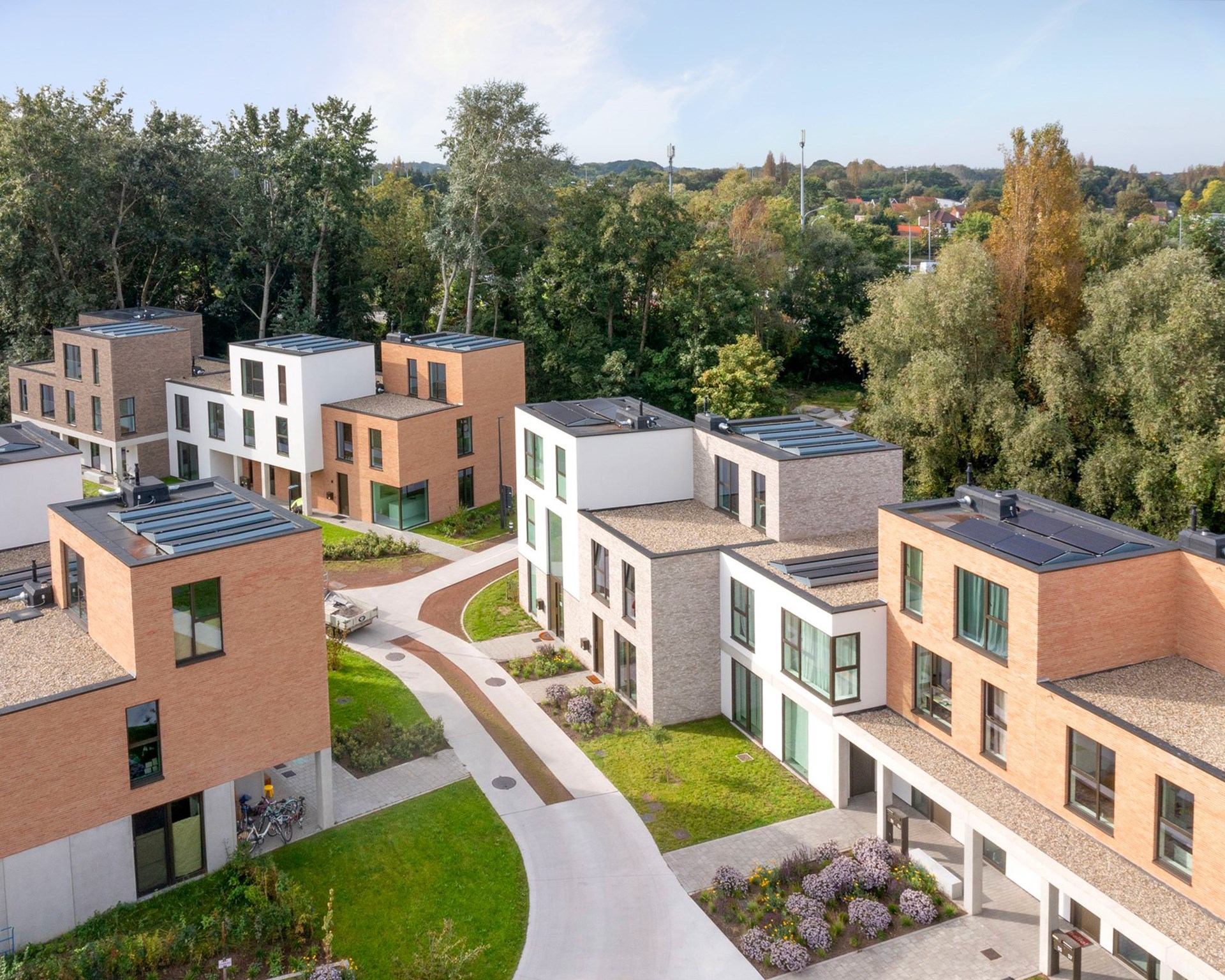 De combinatie van stad én groen is gegeerd goed in Gent. Vastgoedontwikkelaar Zabra Real Estate speelt in op deze vraag met Hof van Gent. Waar vroeger de Broeders van Liefde door hun uitgestrekte tuin wandelden, komt een woonerf met verschillende types huizen en appartementen, omrand door bomen en waterlopen, naar een ontwerp van Bontinck architecture and engineering.