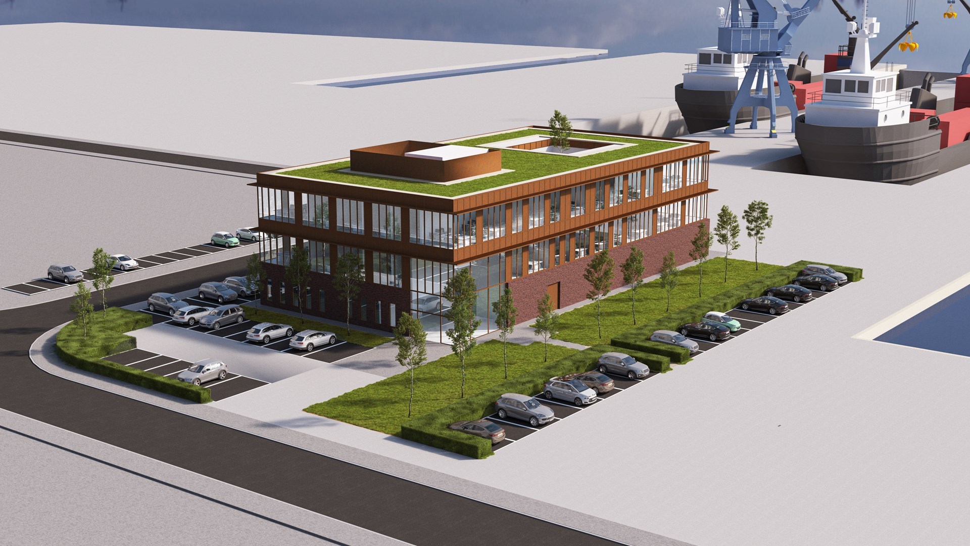 Het nieuwe hoofdkantoor van EDR is 3.600 m2 groot en komt te liggen ter hoogte van dokken 3 en 4 in de haven van Antwerpen. Het volume is opgebouwd uit drie bouwlagen. De onderste laag wordt massief uitgewerkt, terwijl de twee bouwlagen erboven volledig opengewerkt zijn en veel zicht bieden op de omgeving. Het gebouw bevat zowel kantoren als arbeiderslokalen.