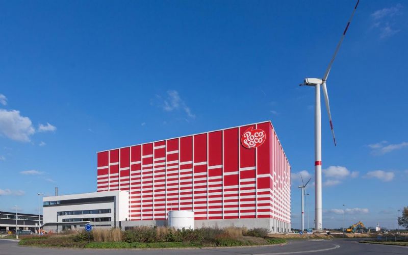 Snackfoodproducent Poco Loco breidde zijn vestiging in Roeselare onlangs uit met een volautomatisch hoogbouwmagazijn en een logistiek centrum. Een transparante transportbrug van meer dan 100 meter lang verbindt de nieuwe gebouwen met de bestaande productiehal. Ook de rood-witte gevelbekleding springt in het oog.