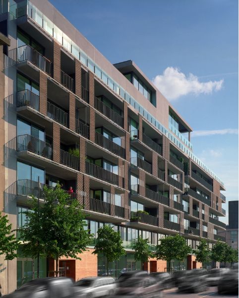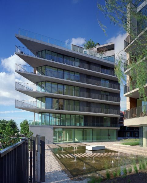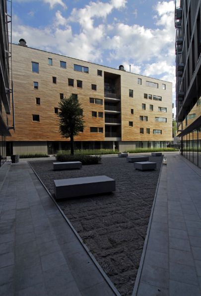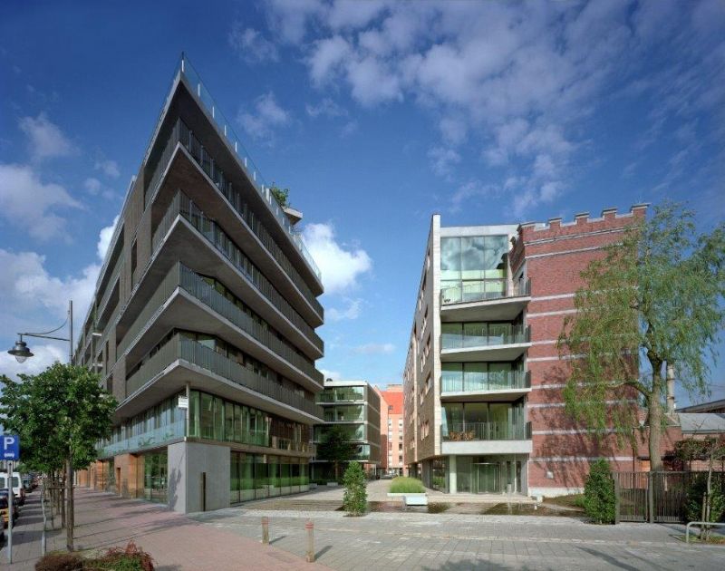 Onze uiteindelijke configuratie van de bouwvolumes zoekt het midden tussen stedelijke verdichting en ruimtelijke beleving. Het project bestaat uit 3 gebouwen: Blok A sluit aan op het resterende hoekgebouw. Blok B loopt parallel met de Timmerwerfstraat. Blok C omvat het bestaande pakhuis dat gerenoveerd en uitgebreid werd met een aanbouw. De driehoekige ruimte tussen de drie volumes wordt ingericht als privaat binnengebied.