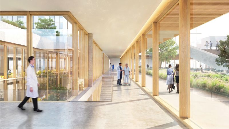 De volledige ziekenhuiscampus van de Cliniques Universitaires Saint-Luc (CUSL) in Sint-Lambrechts-Woluwe wordt grondig vernieuwd. VK Architects & Engineers en Michel Remon & Associés uit Parijs hebben de nieuwe ziekenhuistoren ontworpen: een imposant ontwerp van 52.000 m² en 900 bedden.