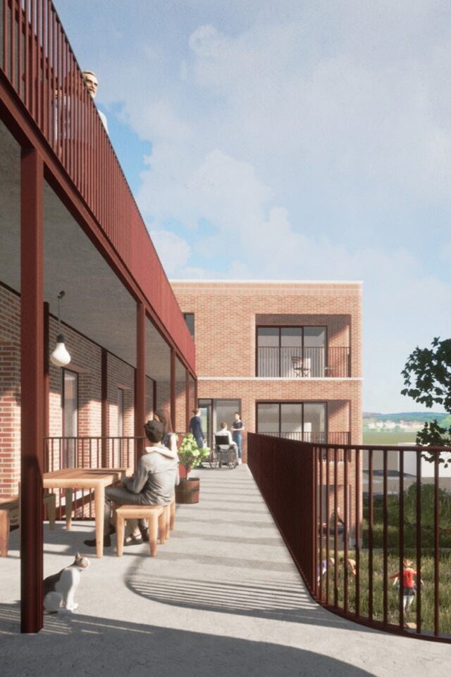 In Genk geeft architectenbureau OM/AR in opdracht van wooncoop cv vorm aan het cohousingproject ‘Huize meer dan ik’. Het project aan de Hoogstraat omvat tien wooneenheden en een gemeenschapshuis, met een sterke focus op collectiviteit en innovatie. Door slimme architecturale keuzes wordt ontmoeting tussen bewoners gestimuleerd, terwijl de individuele wooneenheden voldoende privacy bieden. Het ontwerp bevindt zich momenteel in de fase van vergunningsaanvraag en beslaat een oppervlakte van 1.184 m².