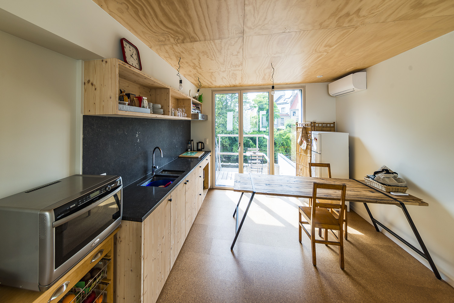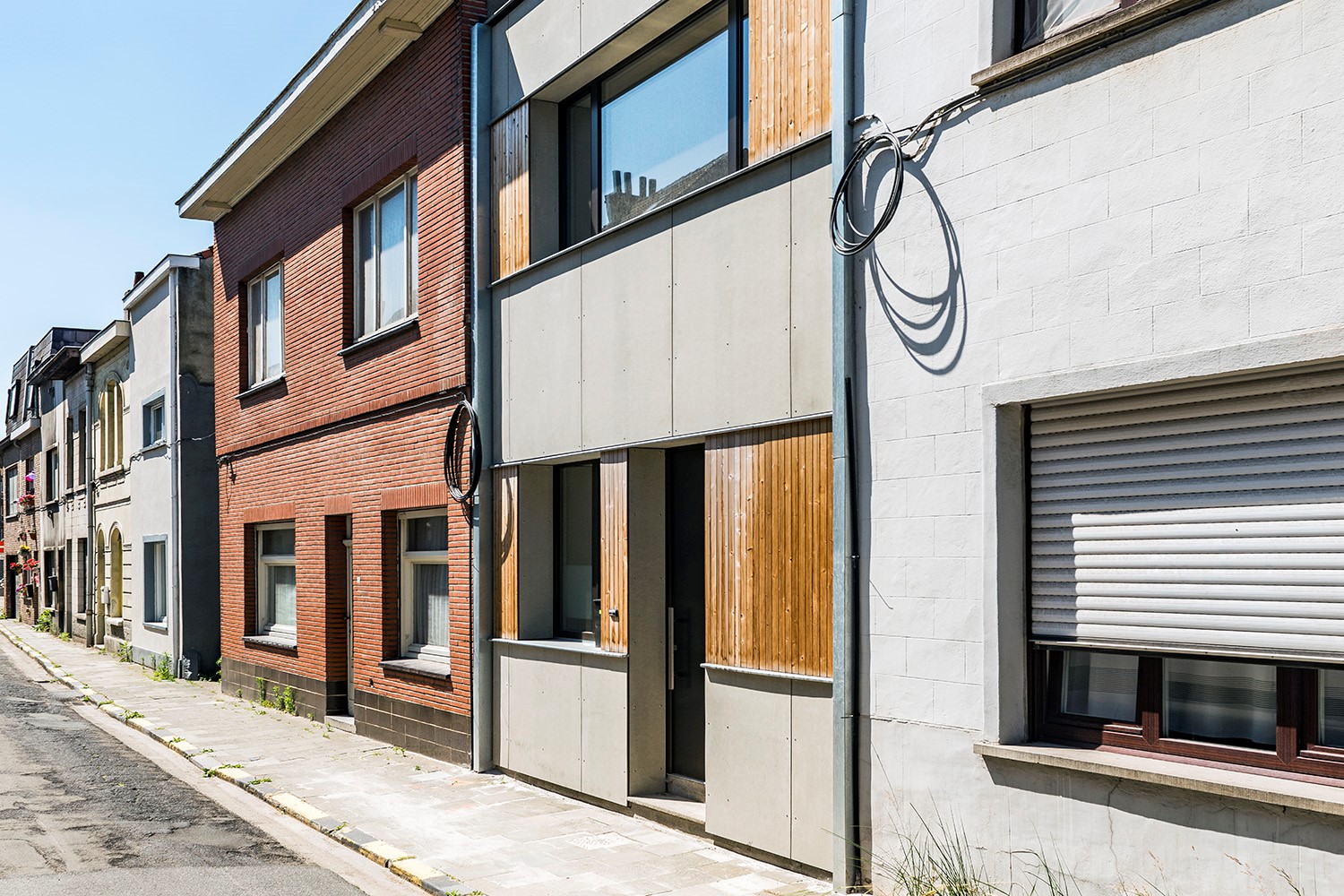 In 2022 werd voor het eerst in ons land een niet-renoveerbare rijwoning vervangen door een in hout geprefabriceerd huis dat met een kraan tussen twee rijwoningen is geschoven. Dit ‘inschuifhuis’ zorgt voor meer ruimtelijk rendement. Het biedt twee bruikbare bouwlagen in plaats van één. En door het beperken van het bebouwde oppervlak is de tuinoppervlakte verdubbeld. De twee modules van het inschuifhuis zijn bovendien herbruikbaar. En de woning is aanpasbaar en klimaatbestendig.