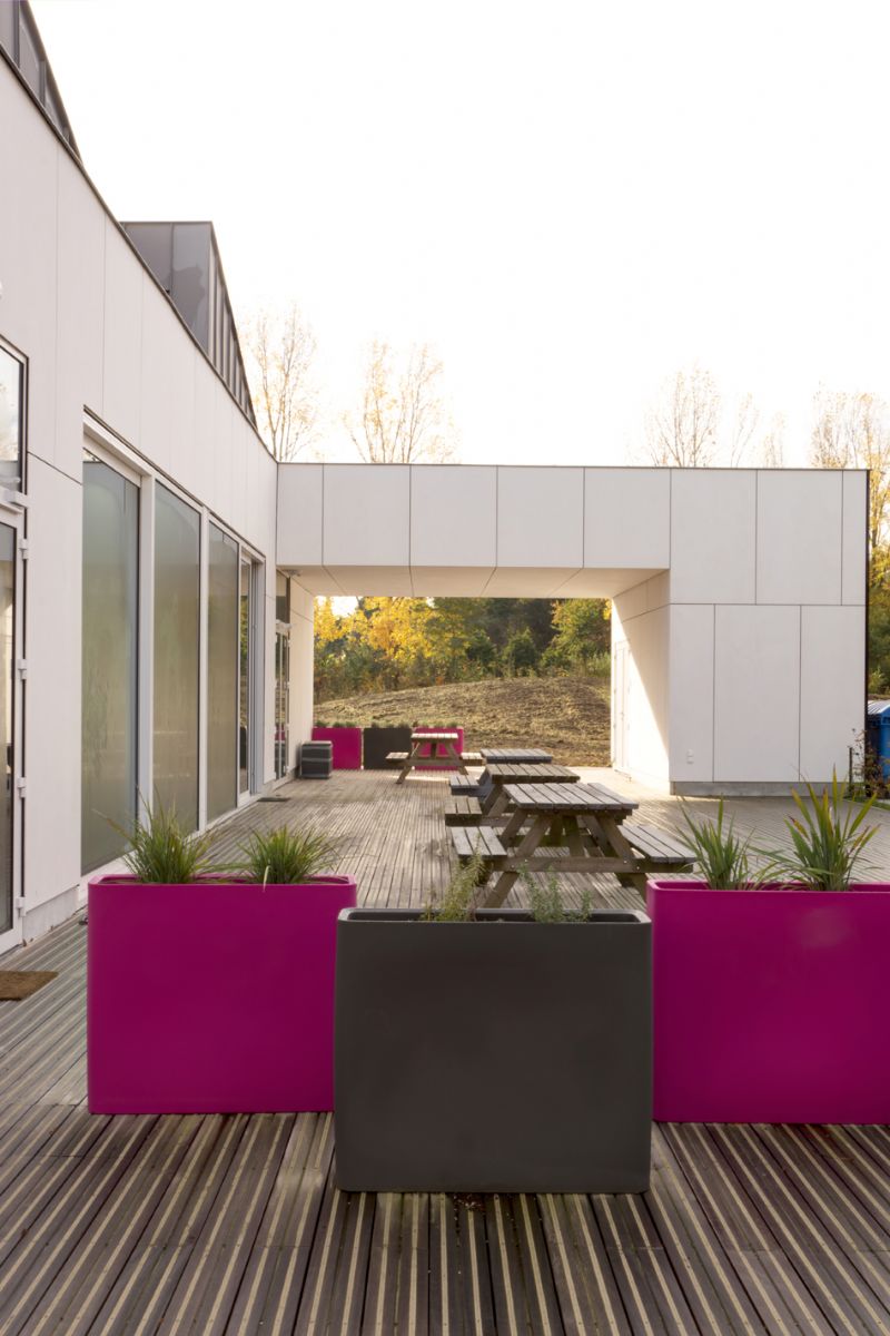 Als pilootschool voor kinderen met autisme, waar termen als ‘visualisatie’ en ‘verduidelijking’ kernbegrippen vormen, is een overzichtelijke en herkenbare structuur een dringende noodzaak. Hiertoe wordt een nieuwe centrale as uitgewerkt, als duidelijke ruggengraat op de campus waarlangs de verschillende schoolgebouwen georganiseerd liggen. Deze as wordt afgewisseld met een verscheidenheid aan actieve en passieve speelruimtes.
