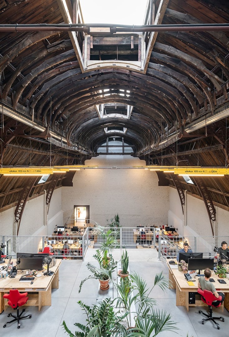 B-architecten heeft de historische Cinema Lux nieuw leven ingeblazen en zo de broodnodige ruimte gecreëerd voor haar groeiende team in Antwerpen. Het iconische gebouw - ooit een bioscoop, een Alfa Romeo-werkplaats, een fruitmarkt en meer - doet nu dienst als de gloednieuwe werkruimte van het architectenbureau. De unieke charme van het gebouw werd intact gehouden, zoals de prachtige houten dakstructuur en de originele projectiemuurdetails. En de oude foyer? Die werd omgetoverd tot een teamcafé.