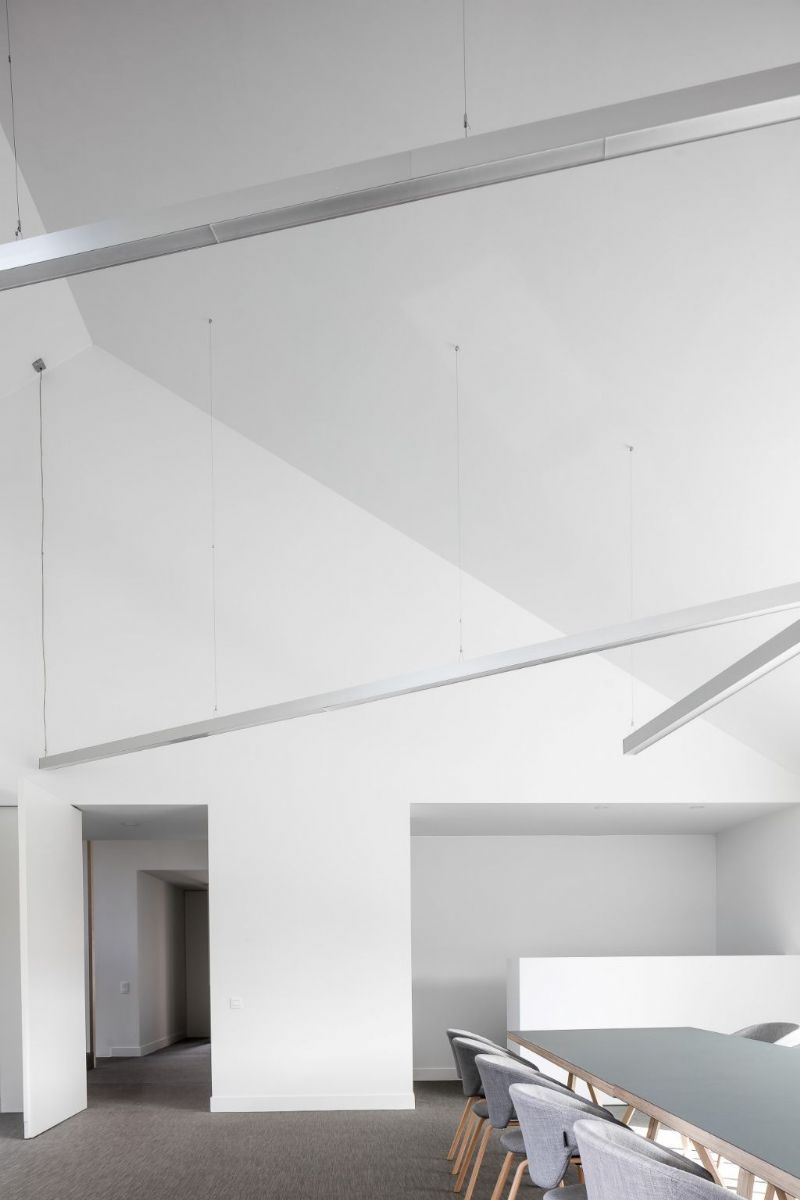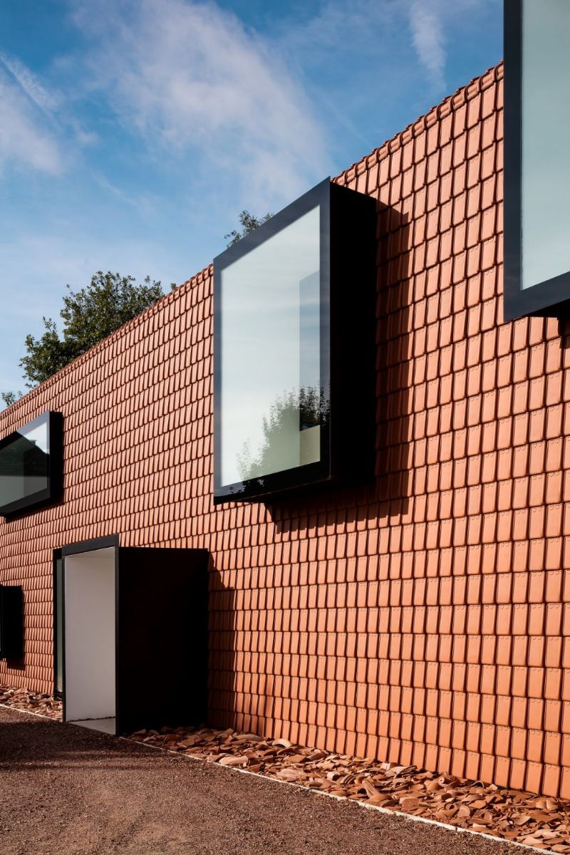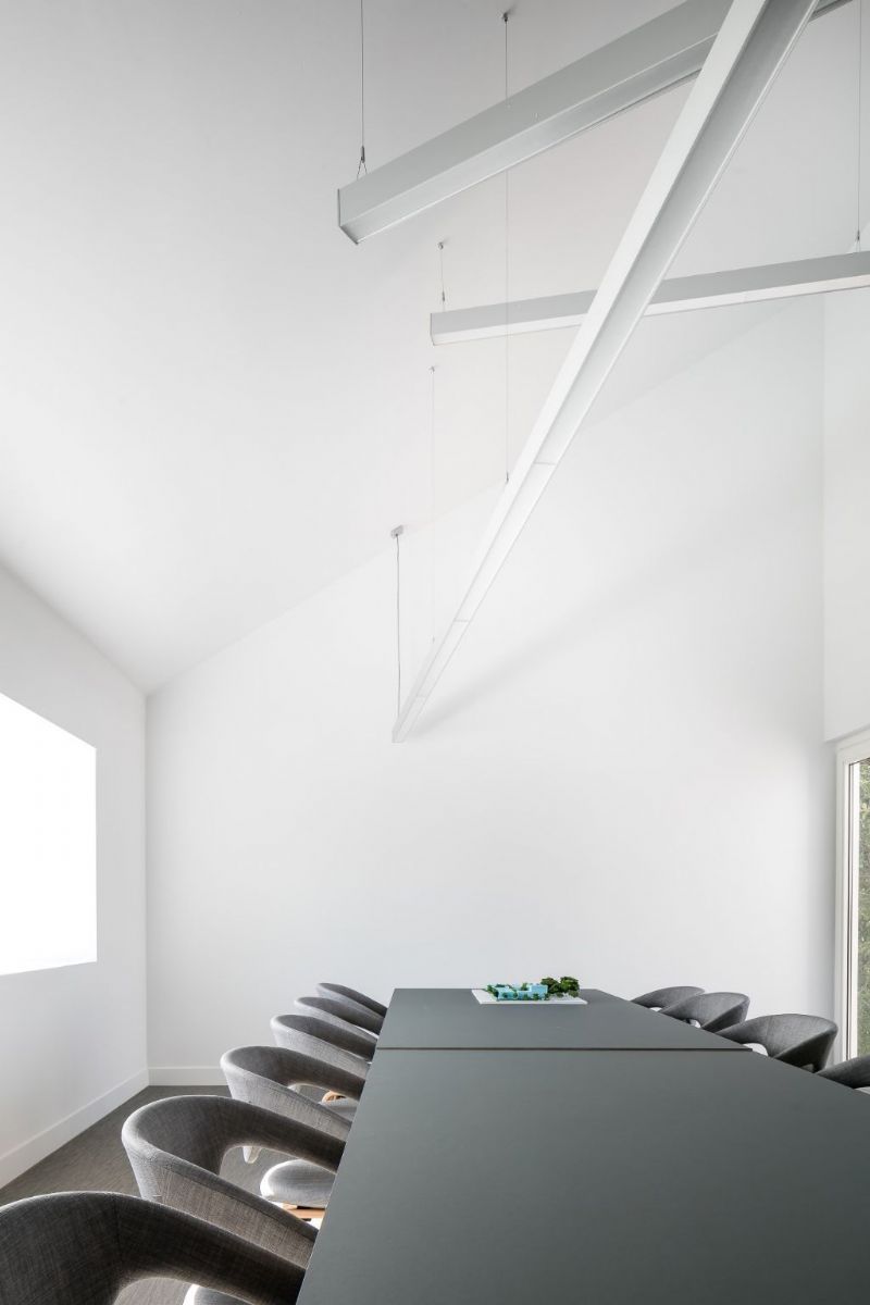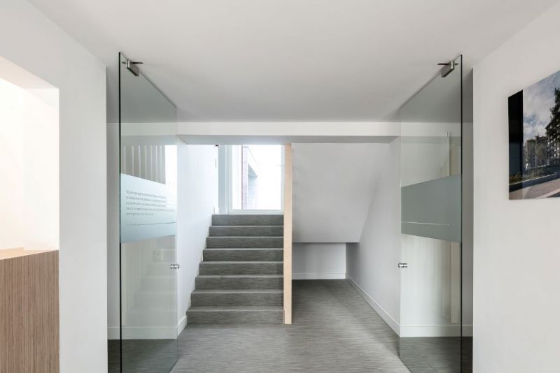 Een verouderde rijkswachtkazerne in Denderleeuw is omgebouwd tot gloednieuw kantoorgebouw voor een sociale huisvestingsmaatschappij. Vooral de typologie met hellend dak en de vuurrode uitstraling van het pand springen in het oog.