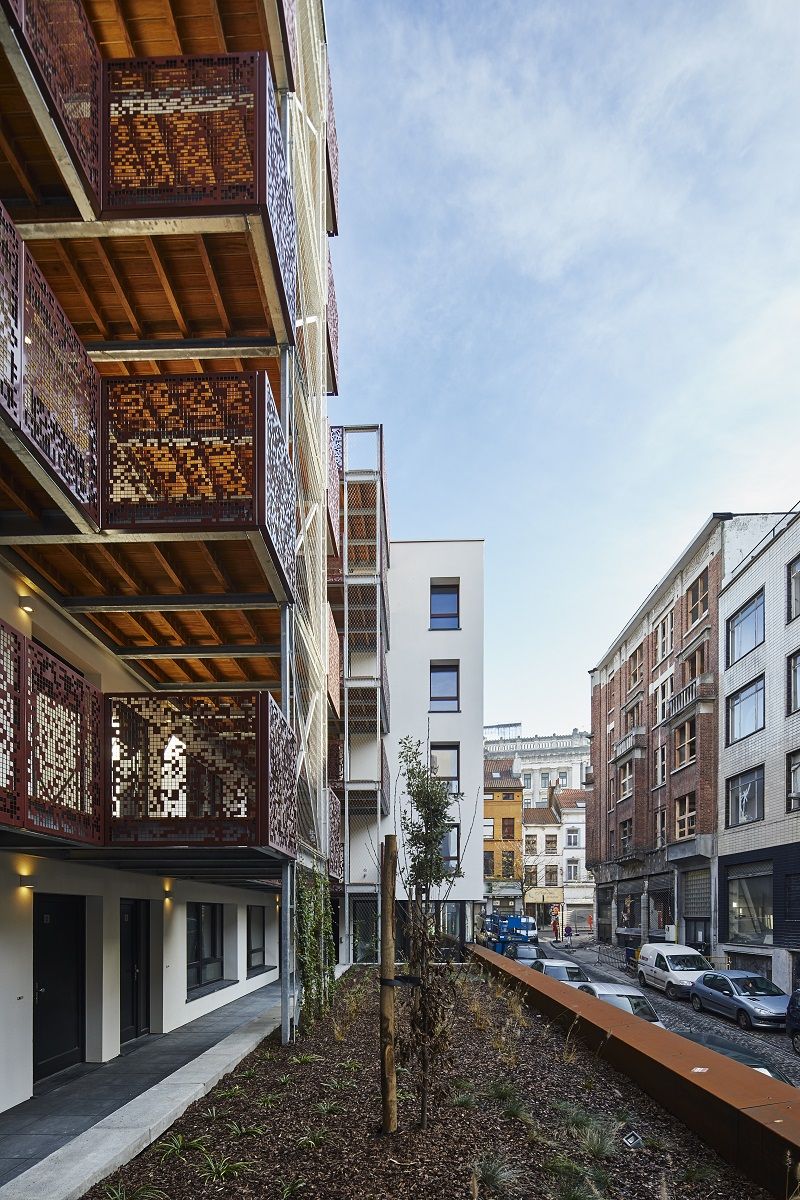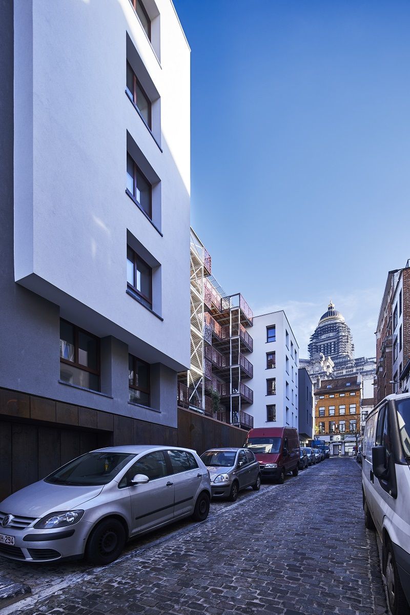 In hartje Brussel, midden in volkswijk de Marollen, heeft Styfhals & Partners Architecten een passief bouwcomplex opgetrokken. Het project Kapucijnen bestaat uit 35 appartementen of studio’s voor oudere personen, een gemeenschappelijke ruimte voor de bewoners op de hoek van het perceel en een commerciële ruimte op het gelijkvloers van de twee bestaande huizen.