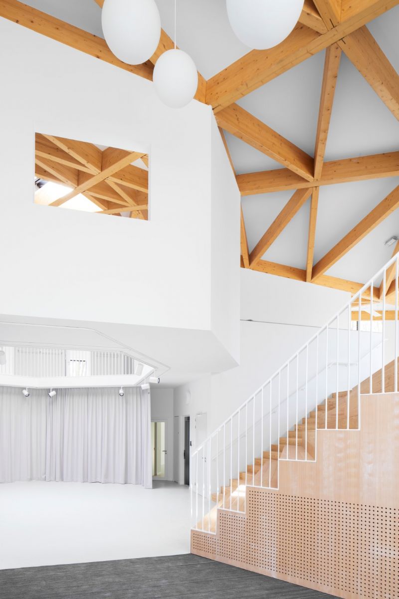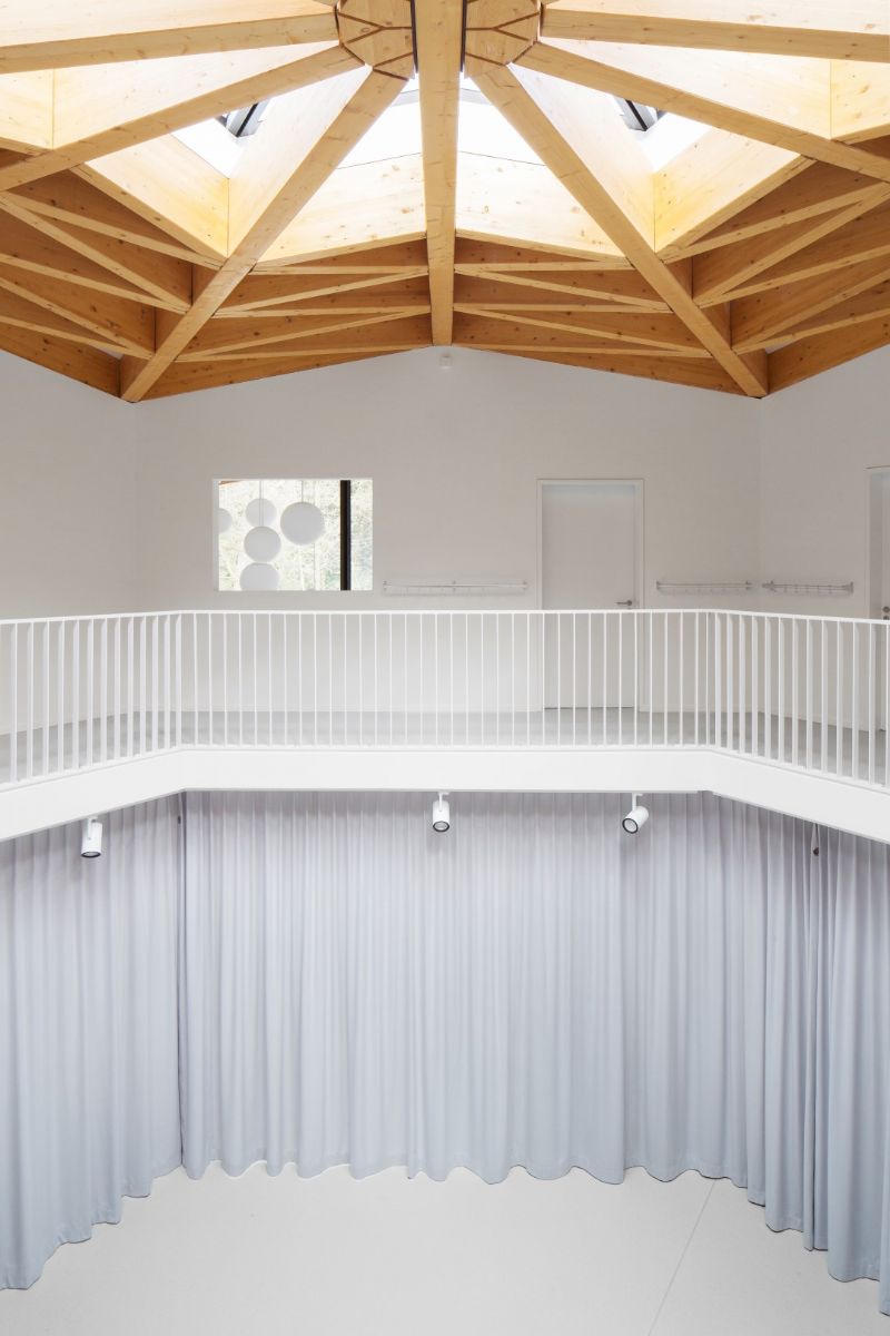 Het domein heeft een groen karakter en ligt in een bosrijke omgeving. Het is een plaats die rust en kalmte uitstraalt, de gebouwen trachten dit gevoel door te trekken. Voor het nieuwe paviljoen bepaalde de Vitruviusman van Leonardo Da Vinci het grid waarop het ontwerp en de balkenstructuur die het dak draagt zijn afgestemd. De inplanting is zorgvuldig gekozen en houdt rekening met de bestaande structuren en natuur. Er is een nauw contact tussen de beleving van de ruimte en de bosrijke omgeving.