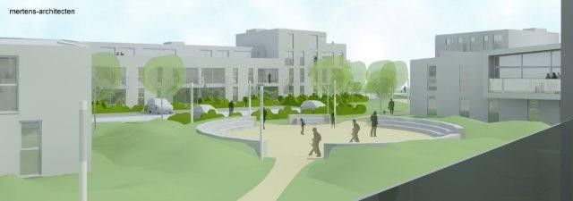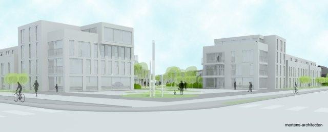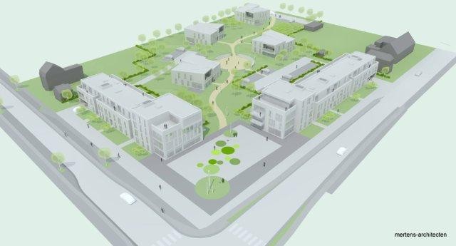 Mertens-architecten heeft plannen uitgetekend voor een nieuwbouwproject in Putte-Kapellen. Het gaat om een terrein van 12.460 m² oppervlakte waar 64 appartementen en 84 parkeerplaatsen zullen worden opgetrokken langs een publiek park en openbaar plein.