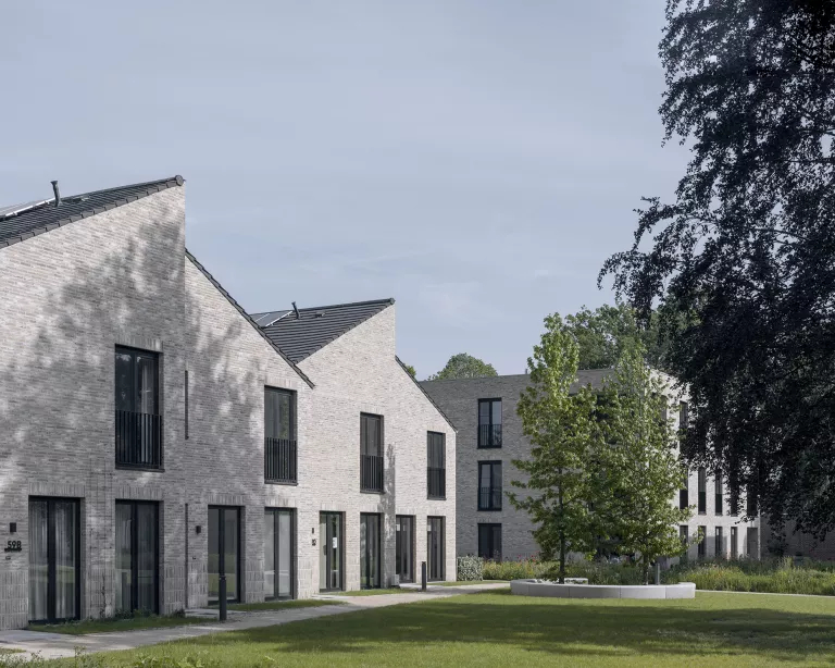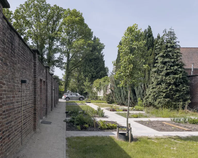 Architectenbureaus Multiple en a2o architecten realiseerden in Genk een woonproject gesitueerd op een voormalig kloosterterrein uit de jaren 1950. De 45 nieuwe woningen zijn onderverdeeld in drie woningtypologieën: drie appartementsgebouwen, zes rijhuizen met drie niveaus en vijf rijhuizen met twee niveaus, allemaal genesteld in de tuinen van het vroegere klooster.