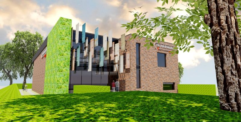 In de kringwinkel in Riemst is de kringloopfilosofie doorgetrokken naar het ontwerp van het nieuwe gebouw. BURO B architectuur & interieurdesign trok een gebouw op dat bijna volledig uit recuperatiematerialen bestaat. De gevel werd bekleed met afval van gevelstenen waar steenstrips van gezaagd waren. Oude buitendeuren werden toegepast als zonnewering in de zuidgevel. Fout gemeten ramen werden geïntegreerd in de gevel.