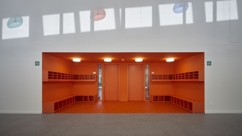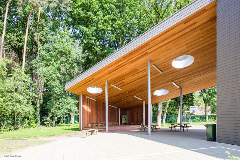 ’t Zandhofje in Zandhoven: een basisschool van GO! met 4 kleuterklassen, 6 graadklassen, 3 klassen voor levensbeschouwelijke vakken, een refter en een polyvalente turnzaal. Het is een methodeschool oftewel leefschool waar een projectmatige aanpak heerst, geïnspireerd door ervaringsgerichte pedagogische visies. a33 architecten stond in voor het ontwerp.