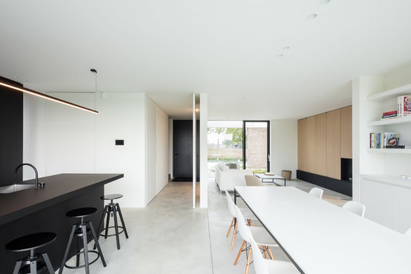 Het Lokerse bureau TOOP architectuur kruiste voor een eengezinswoning in Waasmunster de degens met de strikte bouwvoorschriften en kwam met een creatieve oplossing. De bouwvoorschriften eisten een woning ingeplant op 8 meter van de voorste perceelgrens en met een maximale bouwdiepte van 15 meter. Het resultaat is een compacte BEN-woning van 10 meter op 10 meter.