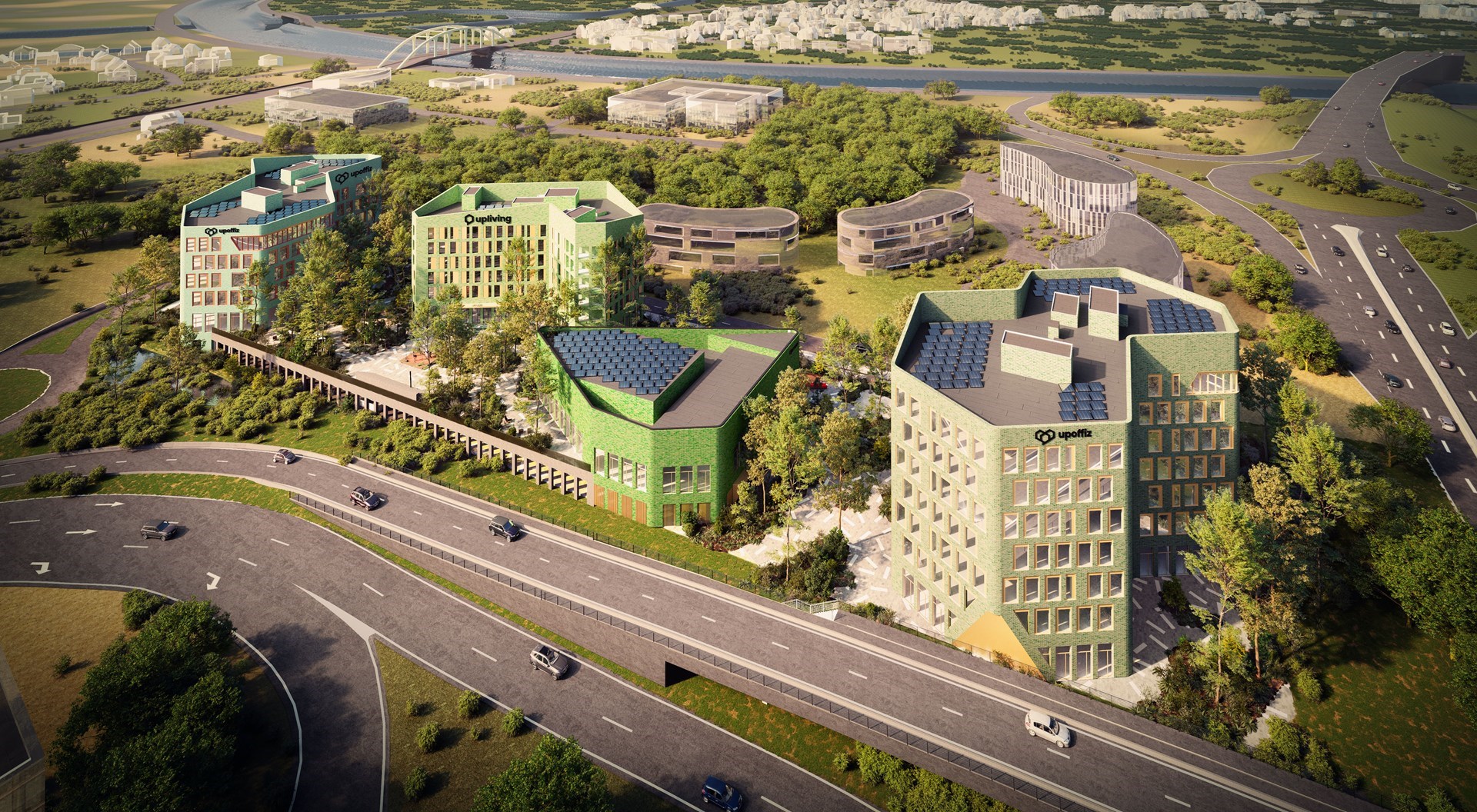Upoffiz - Loop 5 in Gent bestaat uit twee kantoorgebouwen waar meer dan 1.000 talenten aan de slag kunnen, een Upliving gebouw met 45 appartementen voor young professionals en een theater. Maar liefst 10.000m² groene buitenruimte zorgt voor een waanzinnige outdoor experience. Verder is er een Upfood met een aanbod aan gezonde take-away snacks én private dining.