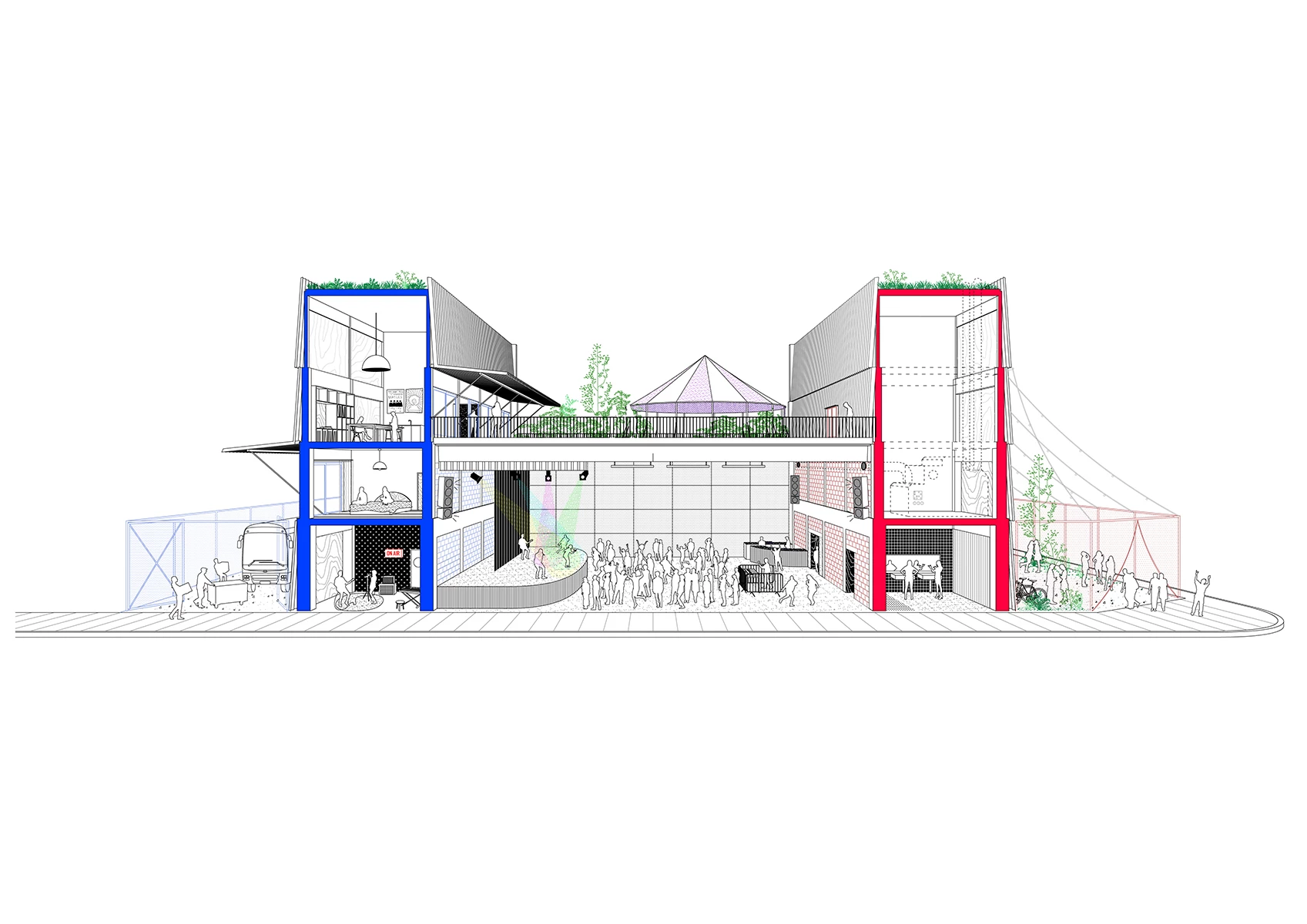 Magasin 4, al meer dan 25 jaar een mythisch trefpunt voor undergroundcultuur, vestigt zich langs het Brusselse kanaal. Deze nieuwe tempel gewijd aan muziek en feesten, een culturele en evoluerende infrastructuur, heeft zijn ruimtelijk en structureel potentieel verdubbeld. Vanaf het eerste moment biedt de architectuur een ruimteoverschot om de geplande activiteiten uit te breiden. Op lange termijn maakt de overgedimensioneerde draagstructuur het mogelijk verschillende verdiepingen aan het gebouw en aan weerszijden ervan toe te voegen. MAGASIN 4 is een openbare architectuur die de initiatieven, de energie en het anders-zijn van Brussel viert en de plaats openstelt voor andere mogelijke toekomsten. Een harde structuur met zachte toevoegingen die schreeuwen: NO FUTURE? FUTURE PROOF!
