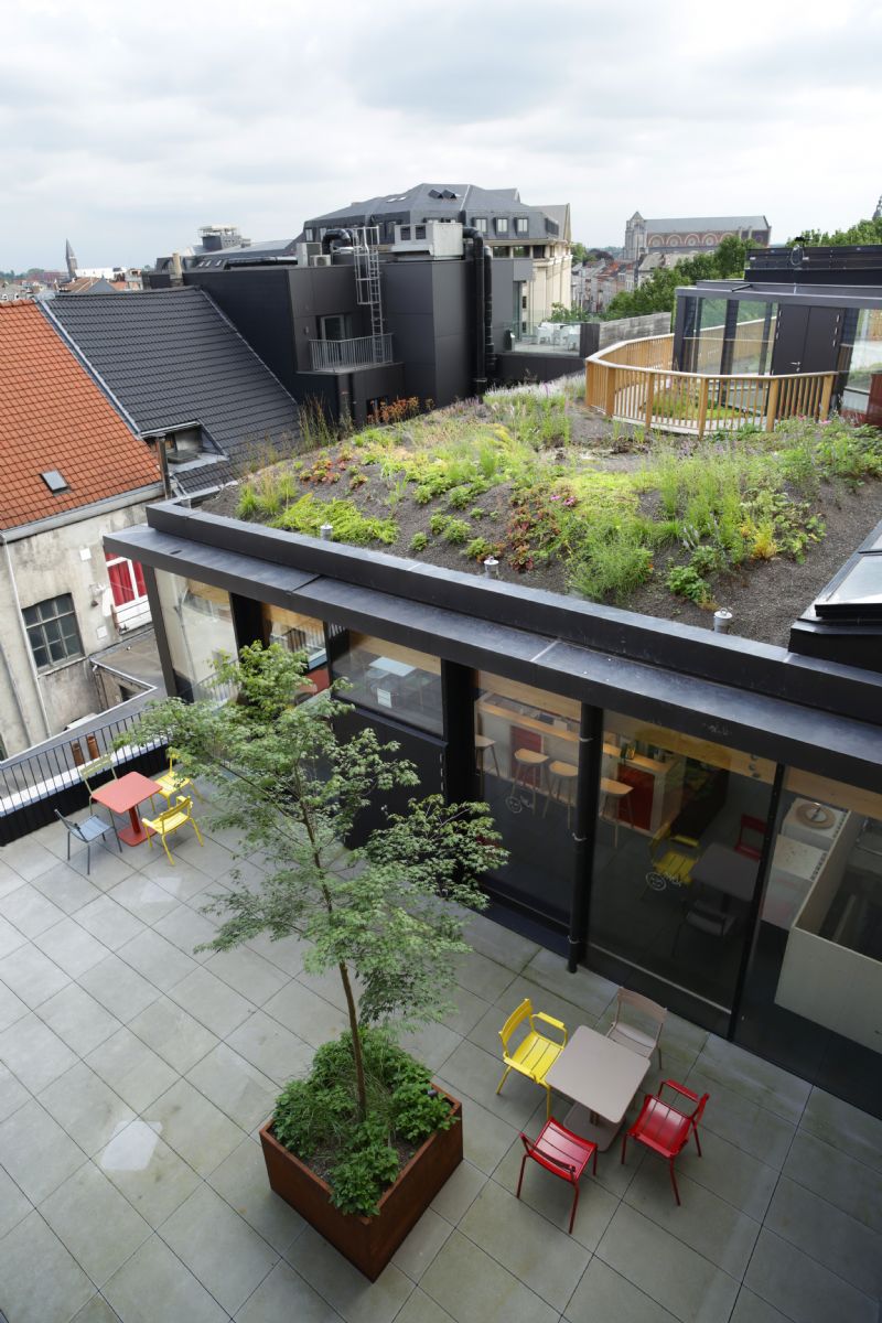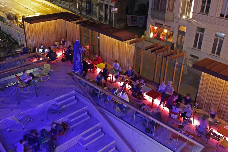 Kunstencentrum Vooruit in hartje Gent is grondig gerenoveerd. Na het nieuwe zomerterras, de renovatie van concertzaal en de voormalige COOP-supermarkt, krijgt in 2018 ook de inkomzone van de Vooruit een grondige make-over.