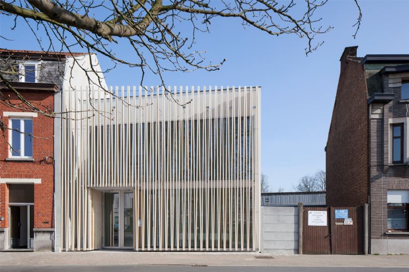 Op het Aimé Delhayeplein in Ronse verrees in 2019 een medisch prikcentrum dat opvalt tussen de meer traditionele woningen die de buurt rijk is. Daar is vooral de houten structuur aan de voorkant verantwoordelijk voor, die het gebouw tot een architecturale parel maakt.