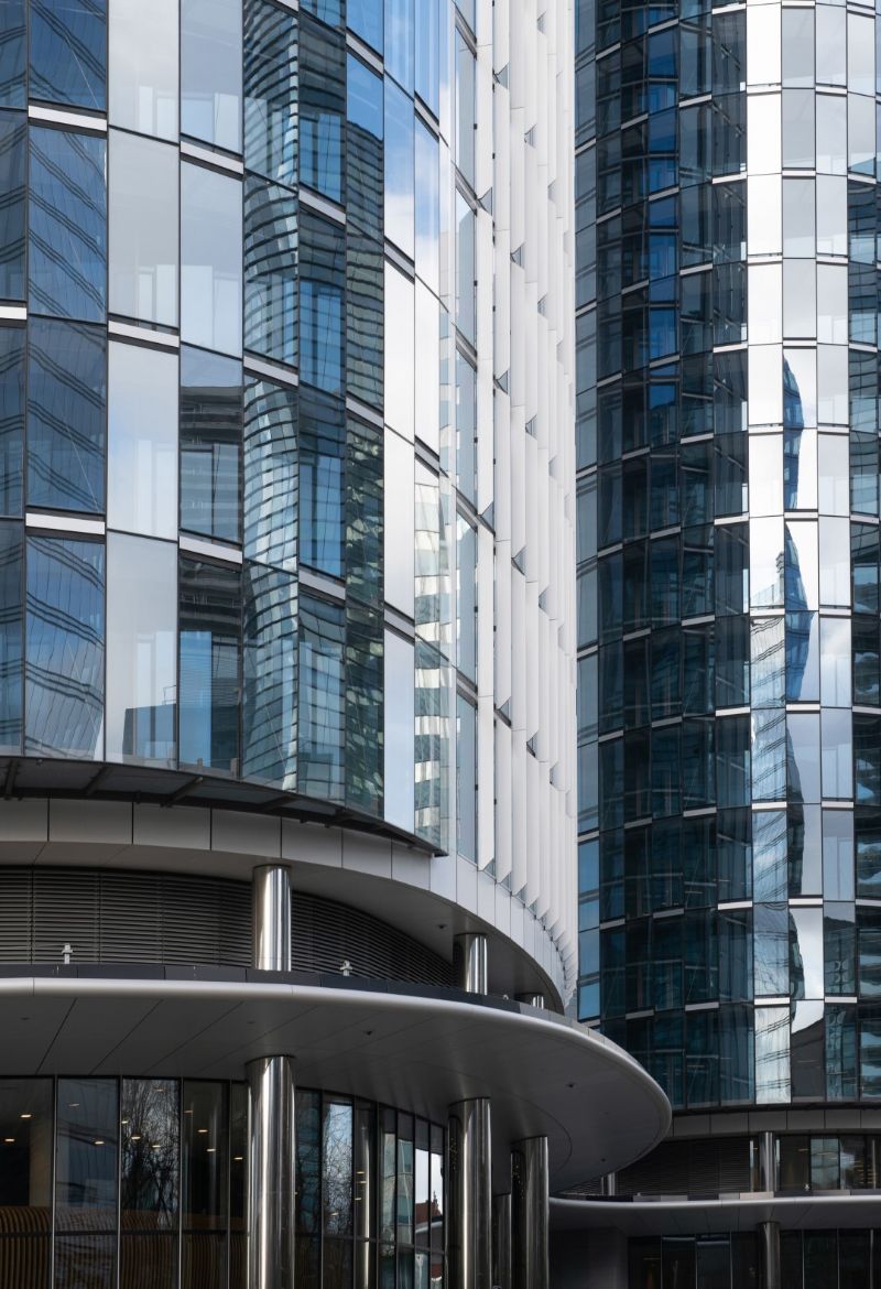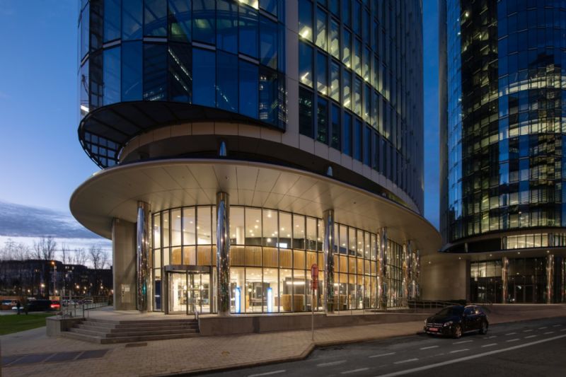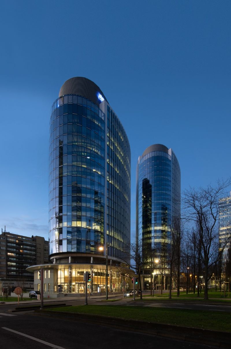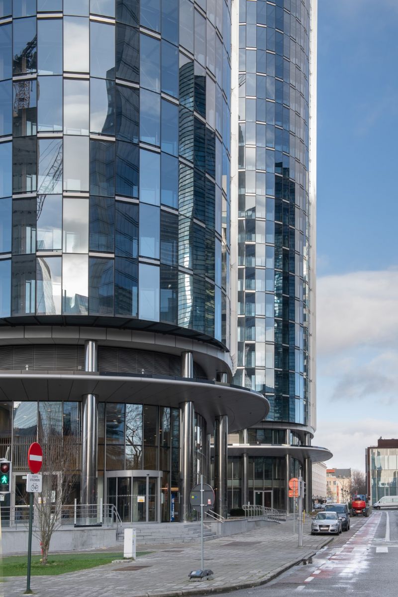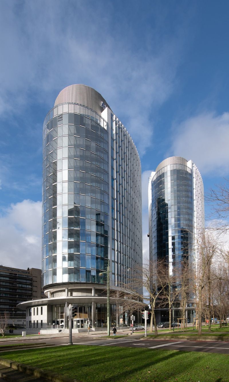 Dit ambitieuze project langs de hoofdas van de Noordwijk in Brussel omvat twee torens - eerder zussen dan tweelingen - die samen circa 62.000 m² bestrijken. Het gelijkvloers en de eerste verdieping zijn transparant en staan rechtstreeks in verbinding met de omliggende publieke ruimte. In die uitnodigende sokkels bevinden zich de ingangen, de foyer van een vergaderzaal, een winkel, de cafetaria's en de lounges. Een brede, flexibele luifel die de twee torens met elkaar verbindt zorgt ervoor dat ze in architecturaal en stedenbouwkundig opzicht één geheel vormen.
