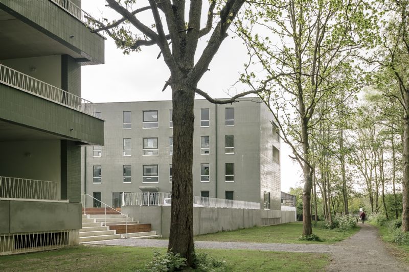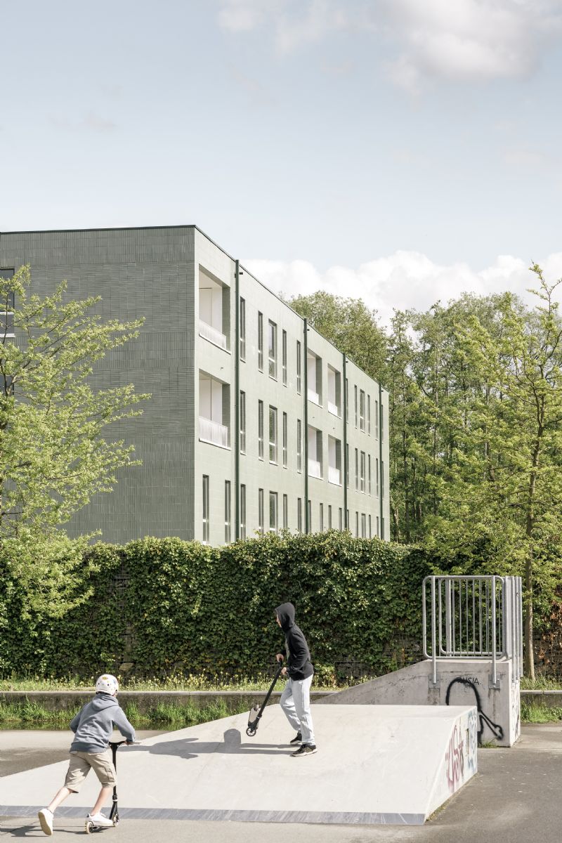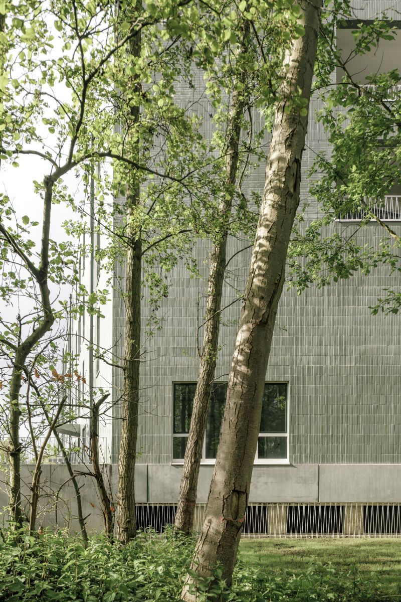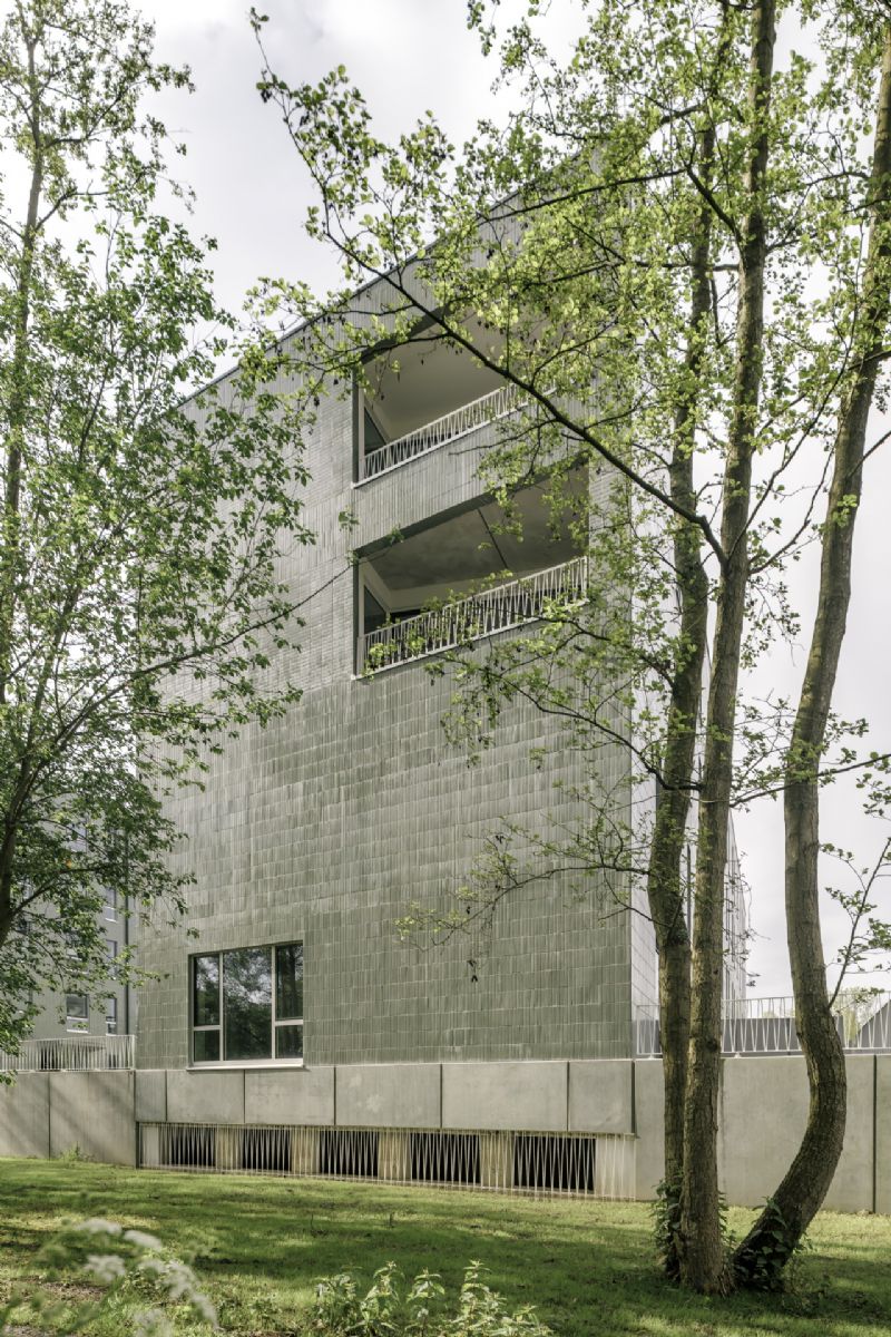 Het ontwerp zet in op het maximaliseren van de beleefbaarheid van het landschap en de integratie in de omgeving. Het woonprogramma wordt opgedeeld in twee langwerpige bouwvolumes die noord-zuid georiënteerd zijn ingeplant zodat het geheel zich opent naar het park.