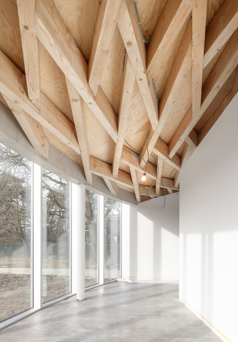 Het nieuwe paviljoen van 420 m2 is een uitbreiding van het bestaande koepelvormige gebouw. Het nieuwe gebouw breidt het Frans Masereel Centrum uit naar het open landschap in het zuiden in interactie met de bestaande koepel.