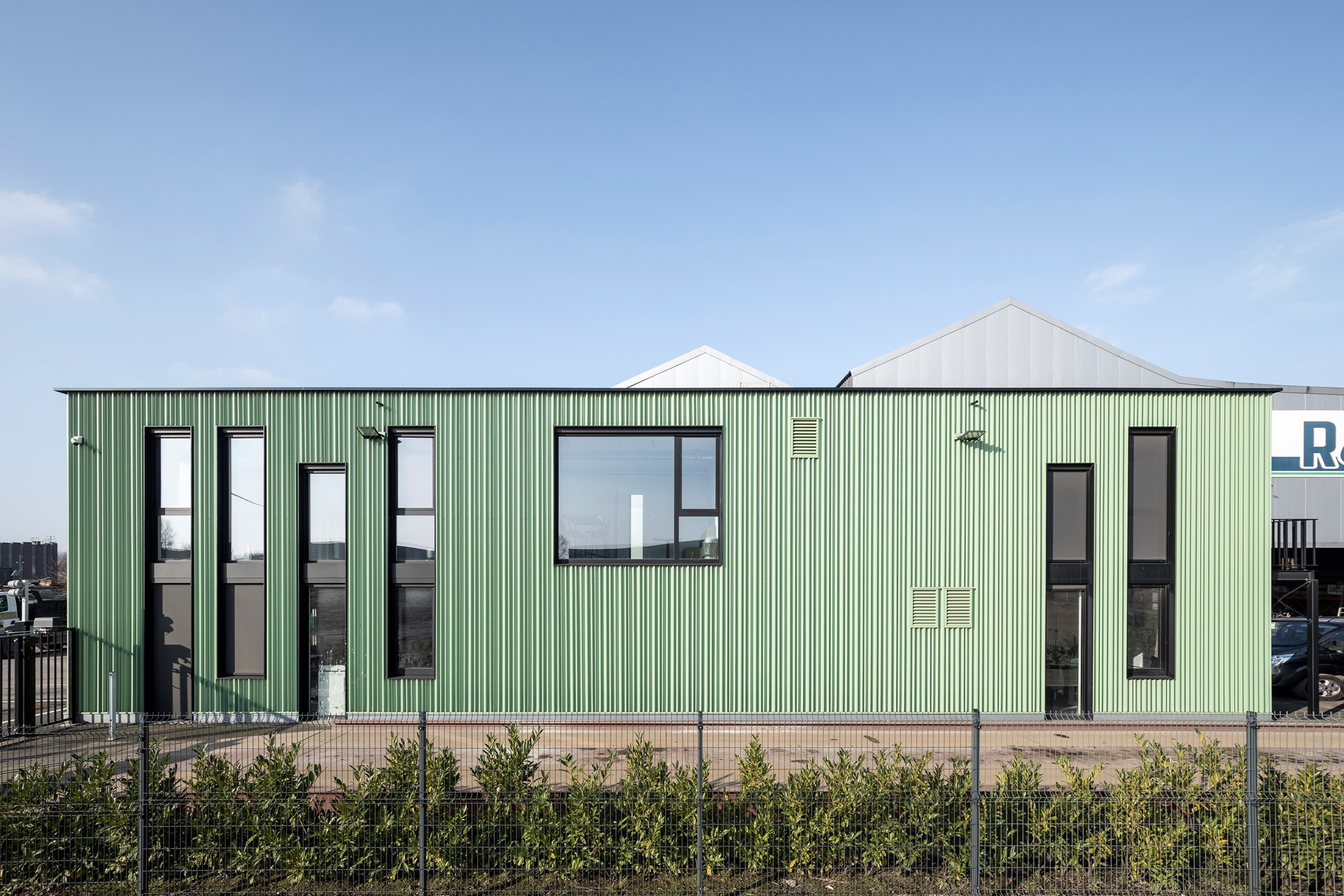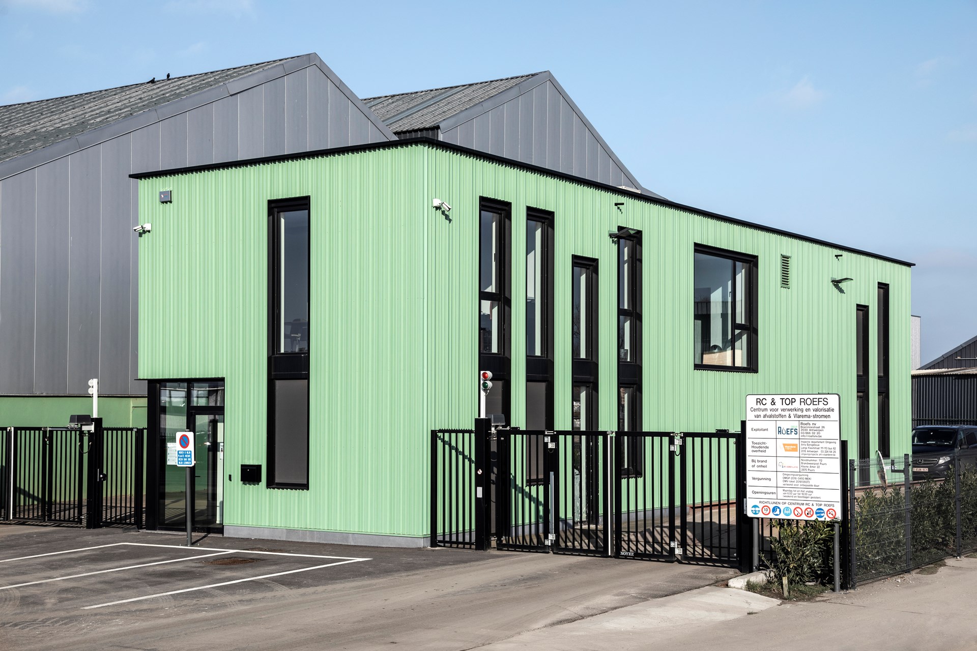 Voor de kantoren van Roefs Group in Puurs wilden de bouwheer en architect het groene karakter van de sector prominent tonen. Hiervoor is er gekozen voor een gevelplaat Eclectic 50 die in 2 types werden toegepast in de gevel en daarnaast de groene kleur.