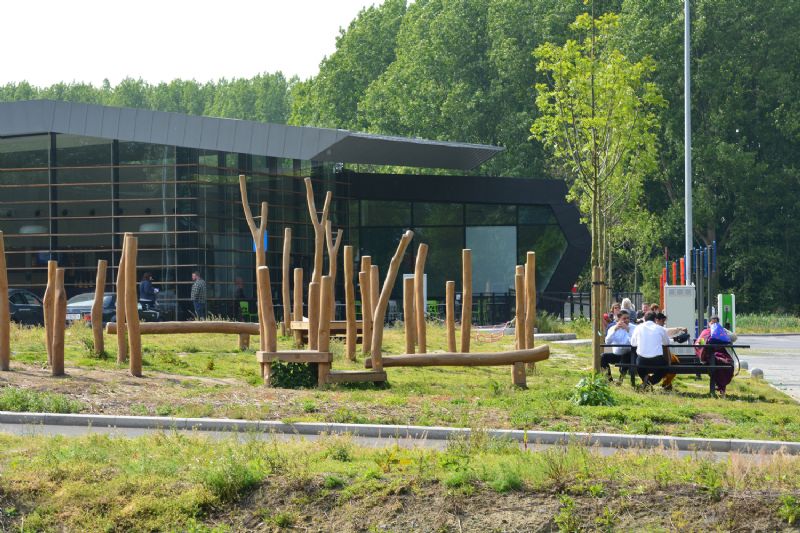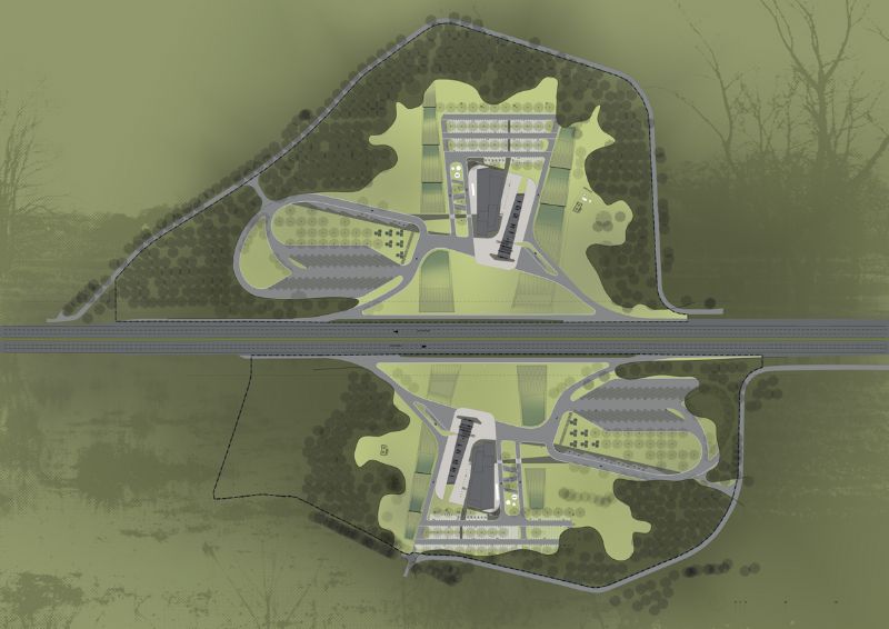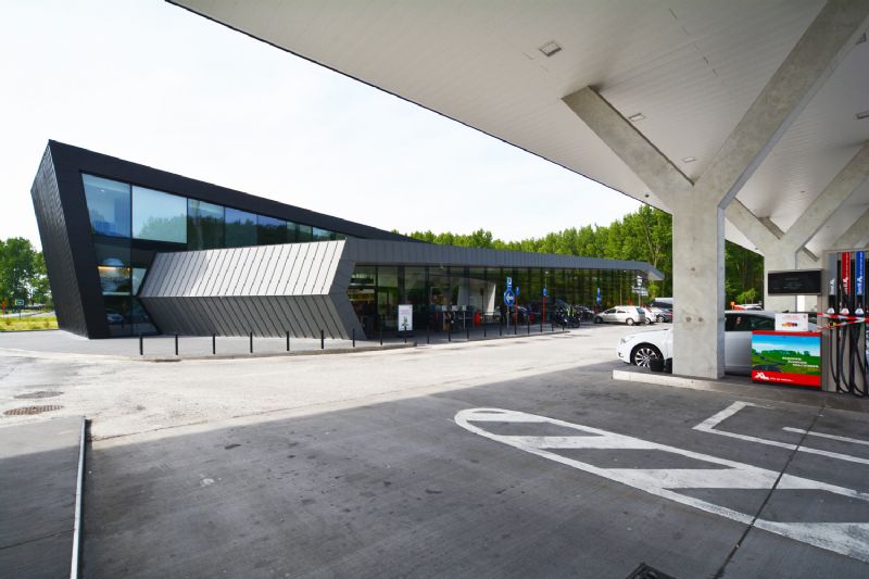 De servicestations langs de E40 ter hoogte van het Oost-Vlaamse Drongen waren na twintig jaar intensief gebruik nodig aan vervanging toe. In opdracht van DELEK Belgium zette Abscis Architecten en studiebureau Ingenium hun schouders onder het project. Bij de ontwikkeling van de servicestations, die uitgerust zijn met een restaurant met open keuken, een shop en een nieuwe sanitaire kern, werd gebruik gemaakt van de BREEAM- methode.