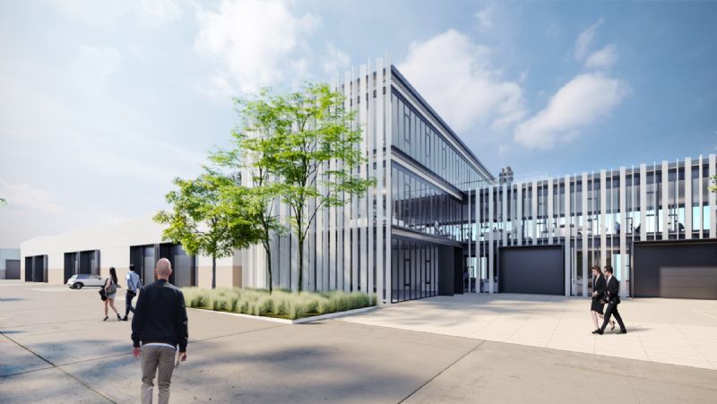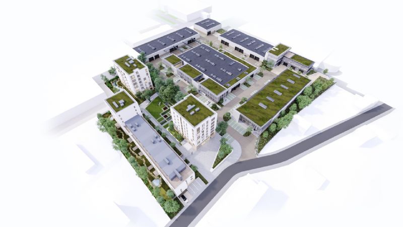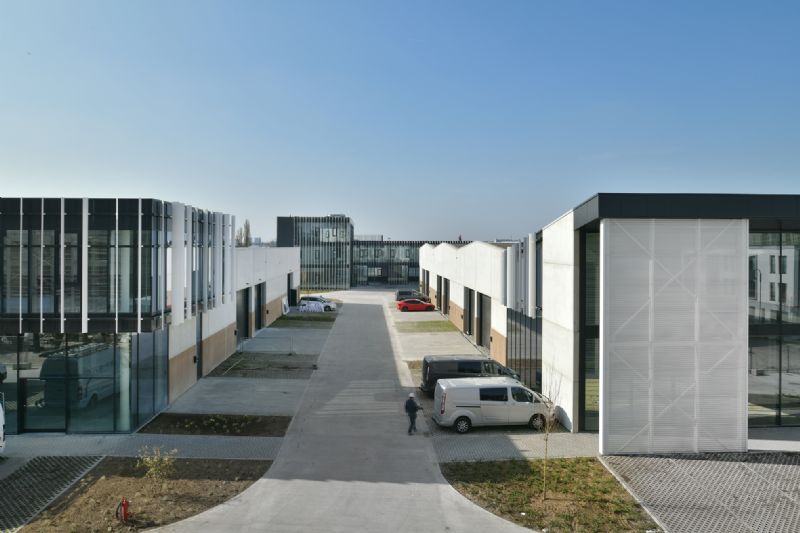 Het industrieterrein en de incubator hergebruiken een groot deel van de bestaande structuur en het bestaande dak. De binnenstraten van het industrieterrein vormen een vierhoek, waarvan drie hoeken zich openstellen voor de omgeving. Deze interventies maken dat het gesloten monolithische geheel evolueert naar een open weefsel dat de naburige sites met elkaar verbindt.