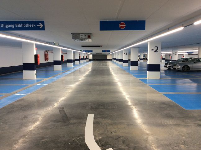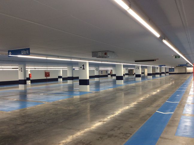 Samen met de heraanleg van het bovengrondse plein heeft de stad Vilvoorde de opdracht gegeven voor de bouw van een ondergrondse parking voor 192 wagens. Het betreft een rechthoekige parkeerbak met aansluitend de in- en de uitrit. De trappen en liften, de technische lokalen en de interne hellingen liggen alle binnen dit rechthoekige volume. De juiste inplanting van de kolommen en de keuze voor een rechthoekige parking maakt dat de circulatie zeer logisch en overzichtelijk is. Er zijn nergens doodlopende stukken aanwezig en alle wegen zijn voorzien in één rijrichting. Hierdoor is er nergens kruisend verkeer.