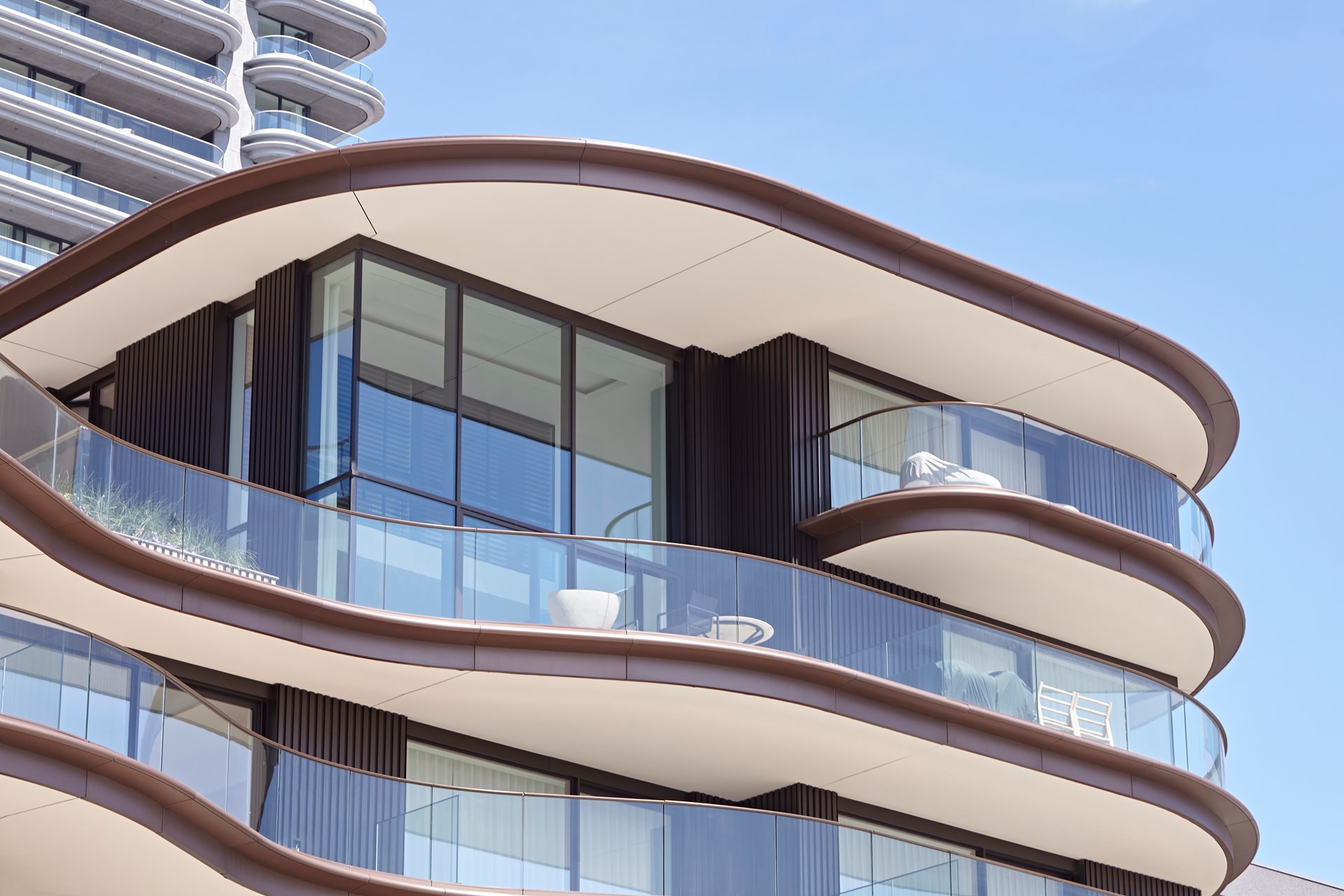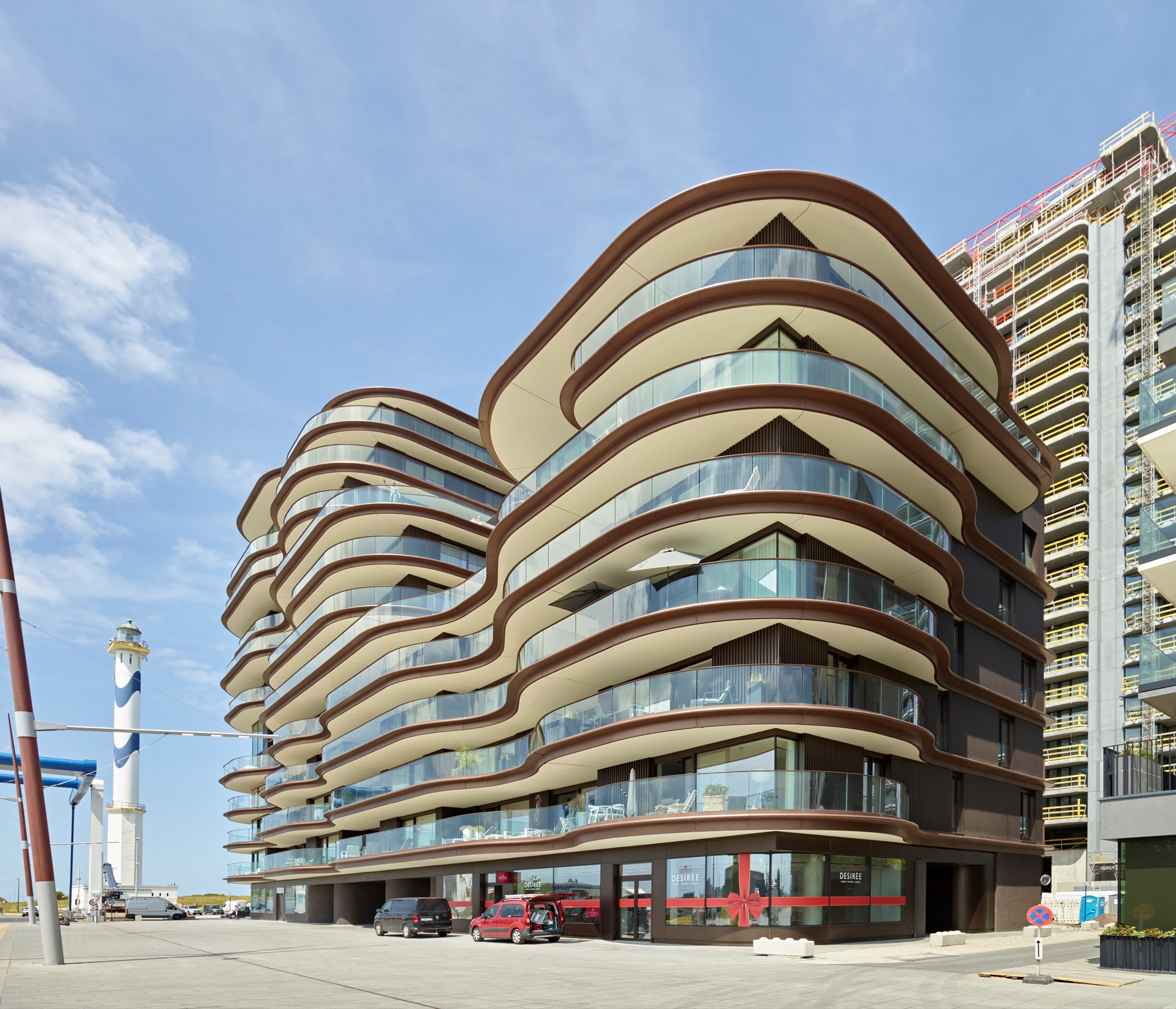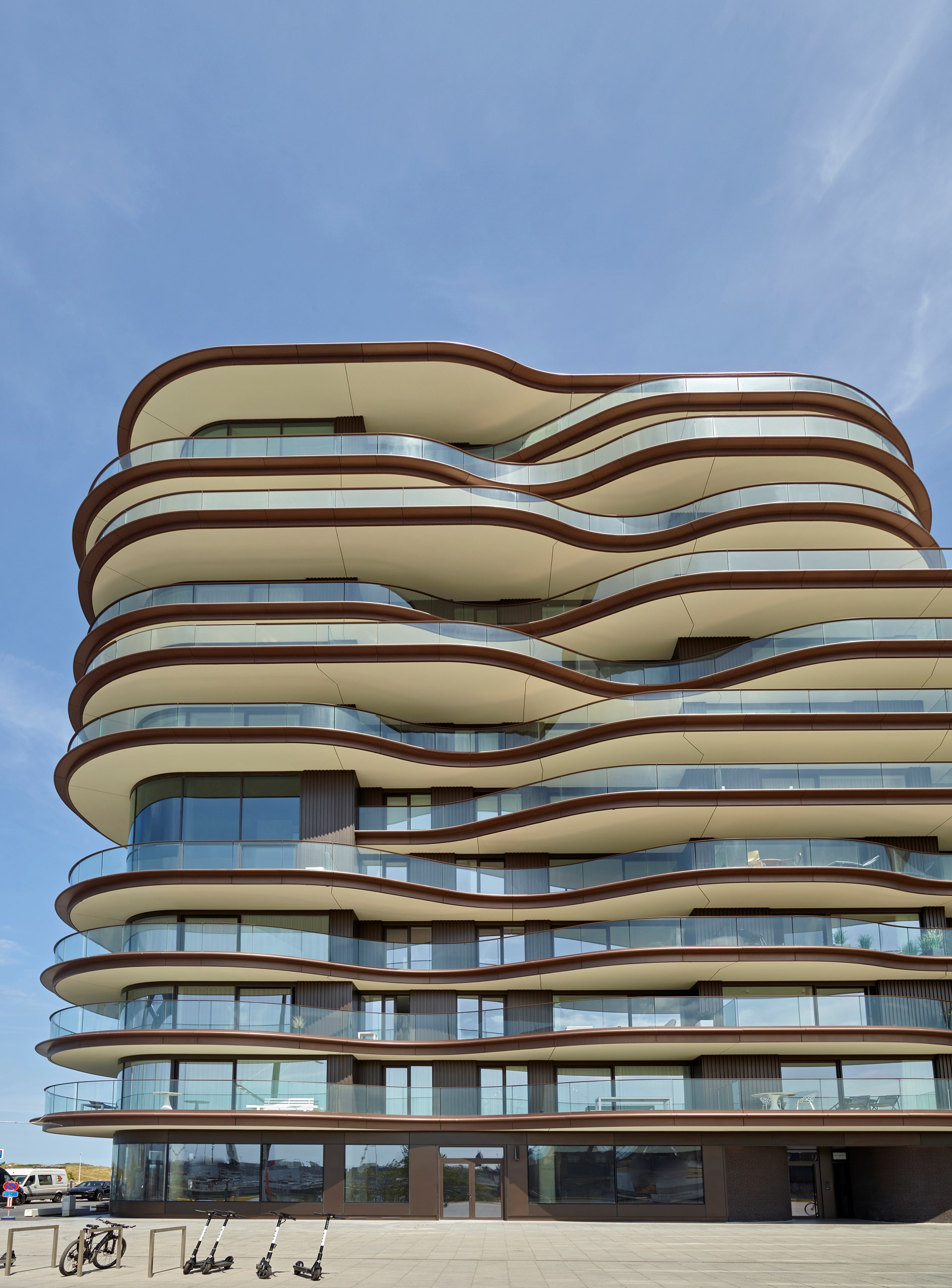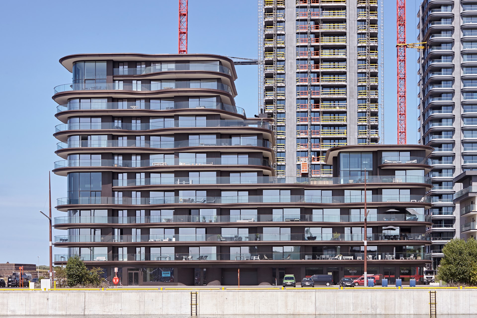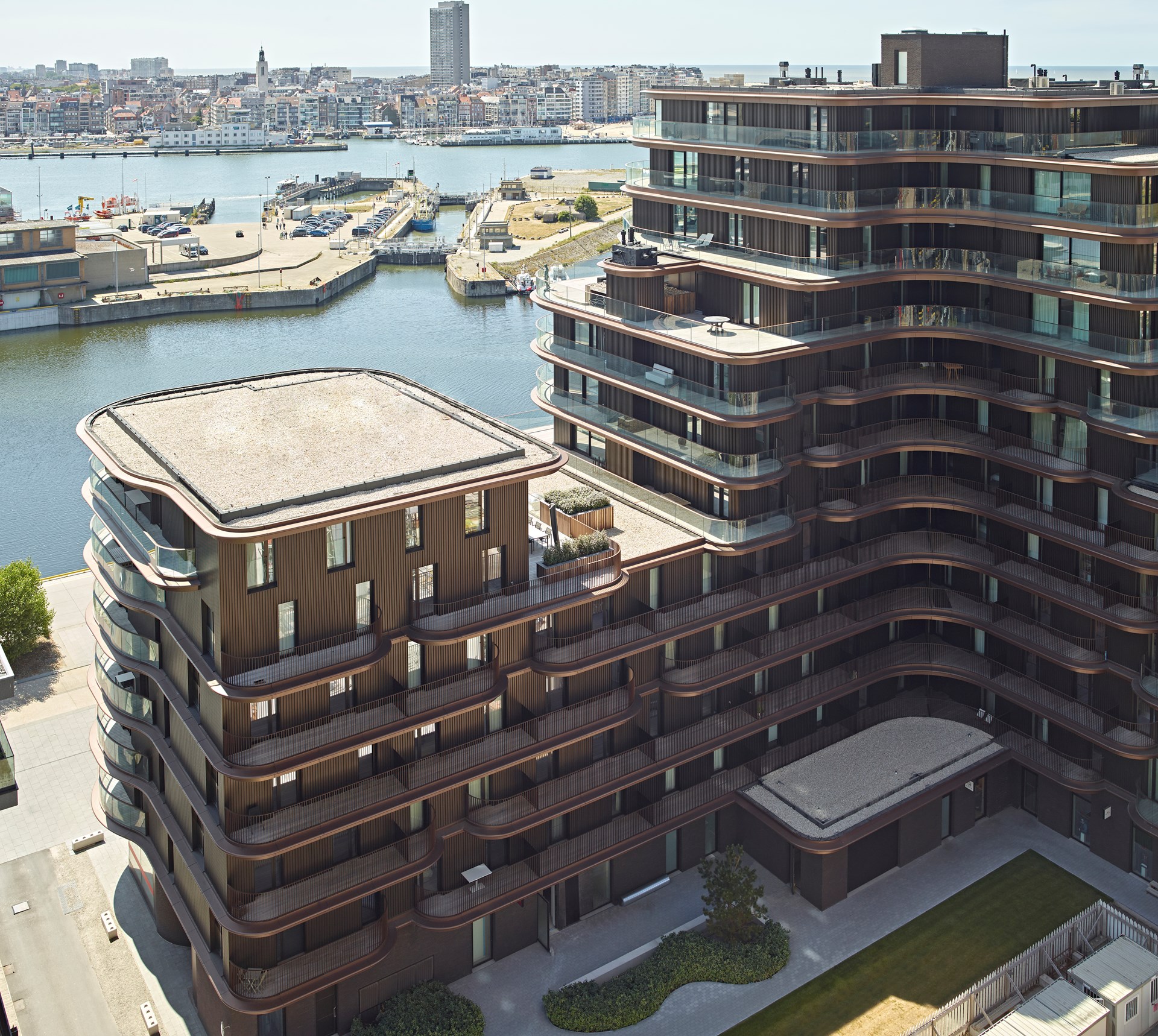Hierin is One Baelskaai, op de meest prominente hoek, het boegbeeld van de ontwikkeling. Ook de optimale oriëntatie en schitterende panoramische zichten op de dokken, de stad Oostende en de kustlijn lenen zich perfect binnen de ambitie om hier luxueuze appartementen te voorzien. Een architectuur met golvende terrassen en expressieve terrasboorden voorzien de woonunits van royale terrassen die tot wel vier meter