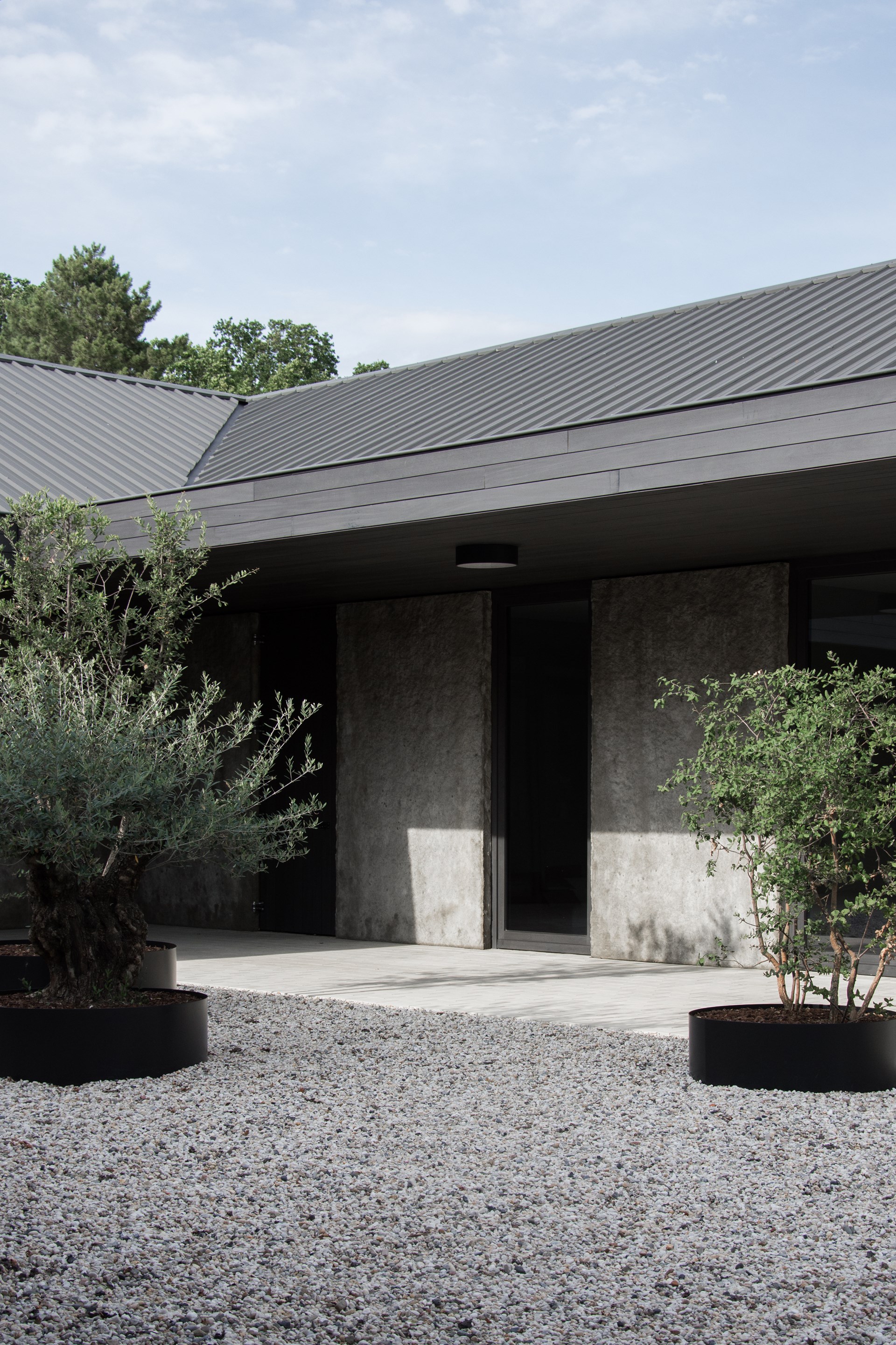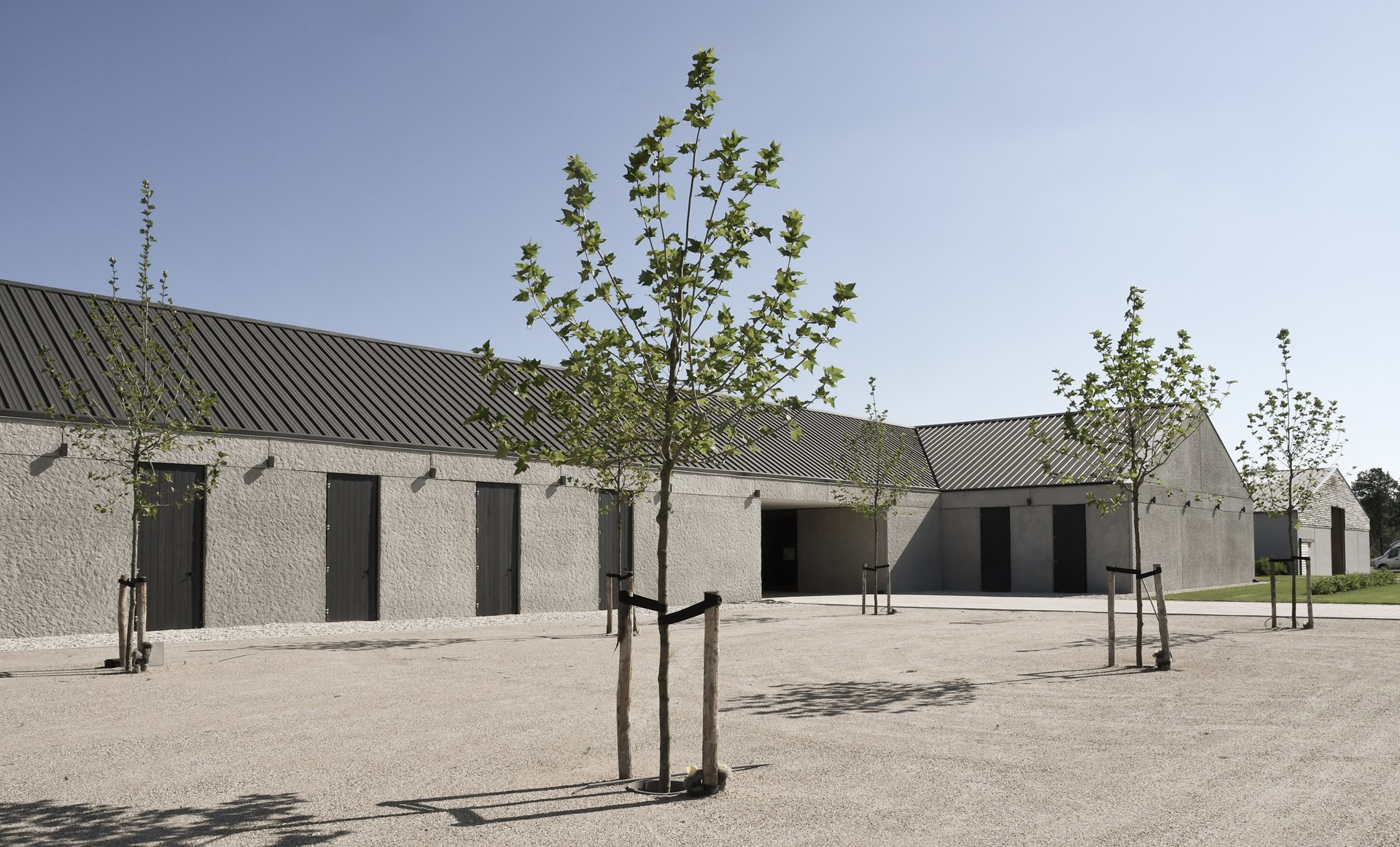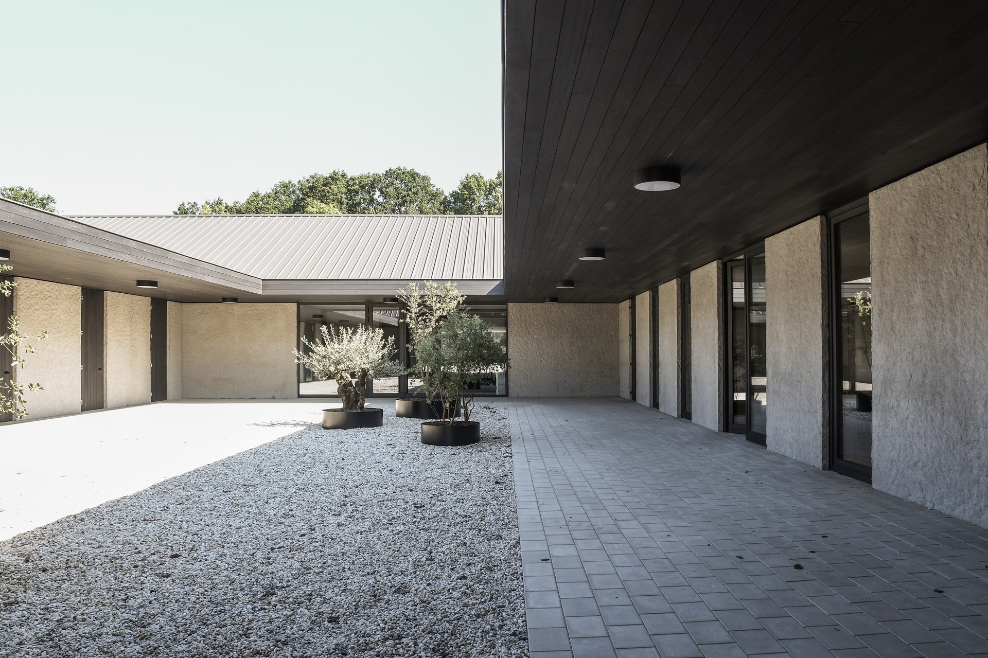 Een schuur, kliniek en bijgebouw, bestemd voor seminaries en het huisvesten van stagiaires, geven richting aan de site en omsluiten een plein. Dit plein verbindt beide gebouwen en geeft schaal aan het weidse landschap.