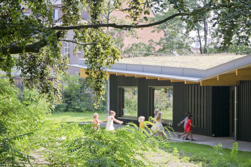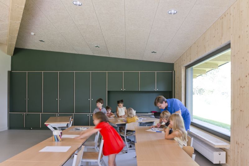 Nadat HUB voor het Groenendaalcollege succesvol een historisch kasteel tot humaniora gerenoveerd had, vroeg de opdrachtgever om bijkomende klassen voor de lagere school te ontwerpen. De site is een beschut deel van het kasteelpark, vlakbij de vijver. HUB ontwierp een lichtvoetig paviljoen dat zich voorzichtig in deze delicate context plaatst, en tegelijk maximaal van de ligging gebruikmaakt voor de realisatie van een bijzondere leeromgeving.