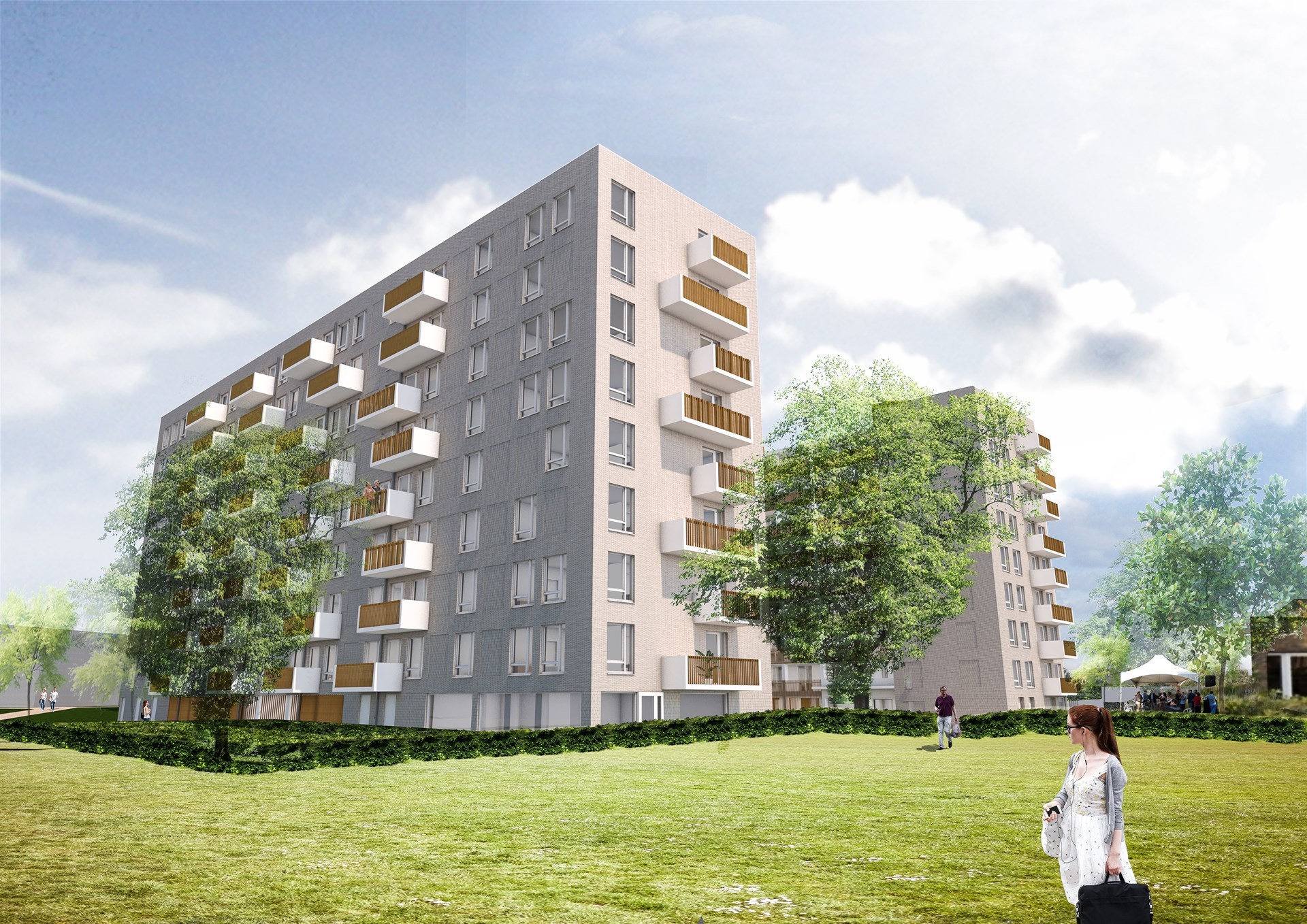 Vlakbij het centrum van Sint-Niklaas rijzen twee woontorens uit boven het Peter Benoit Park. Hun acht verdiepingen herbergen 98 appartementen van de Sint-Niklase Maatschappij voor Huisvesting (SNMH). De torens dateren van begin jaren 1970 en zijn ondertussen hopeloos verouderd. SNMH nam daarom ontwerpbureau arQ onder de arm voor een totaalrenovatie, waarna de appartementen zullen voldoen aan alle hedendaagse normen qua oppervlakte, isolatie en ventilatie. Maar arQ greep de renovatieplannen aan om ook de circulatie grondig te hertekenen. Dankzij de integratie van een externe passerelle en uitkragende balkons worden sociale contacten gestimuleerd, wat tegemoet zal komen aan de levendigheid van de buurt. Op dit moment zijn de werken aan de eerste toren volop aan de gang. In de loop van 2024 start de renovatie van het tweede woonblok.